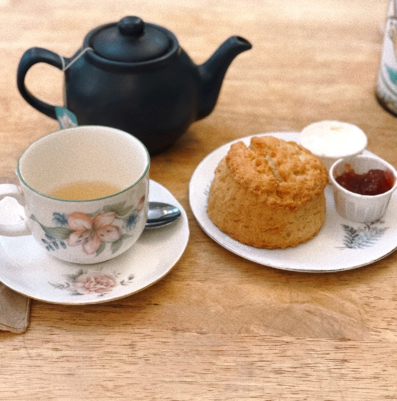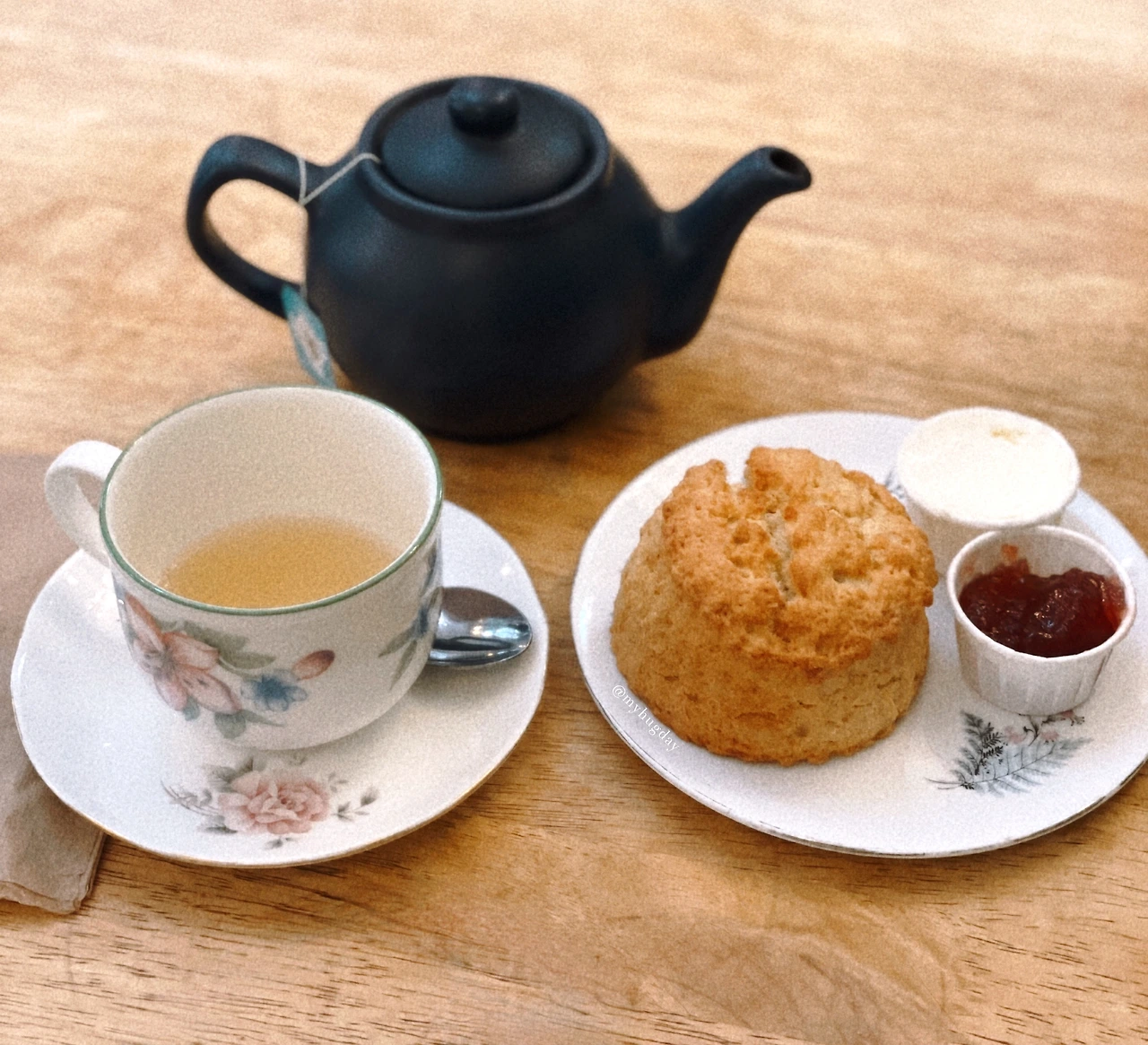 나는 바닐라스콘(with 클로티드크림, 쨈)과 직원에게 추천받은 백차를 주문했다. 홍차와 달리 백차를 주문하니 우유는 제공되지 않았다. 백차에는 산뜻한 과일향이 나서 상쾌한 기분이 들었다. 내 취향에는 홍차가 조금 더 맞는 것 같지만 홍차 특유의 텁텁함을 좋아하지 않는 사람이라면 백차를 시도해 보는 것도 좋겠다.