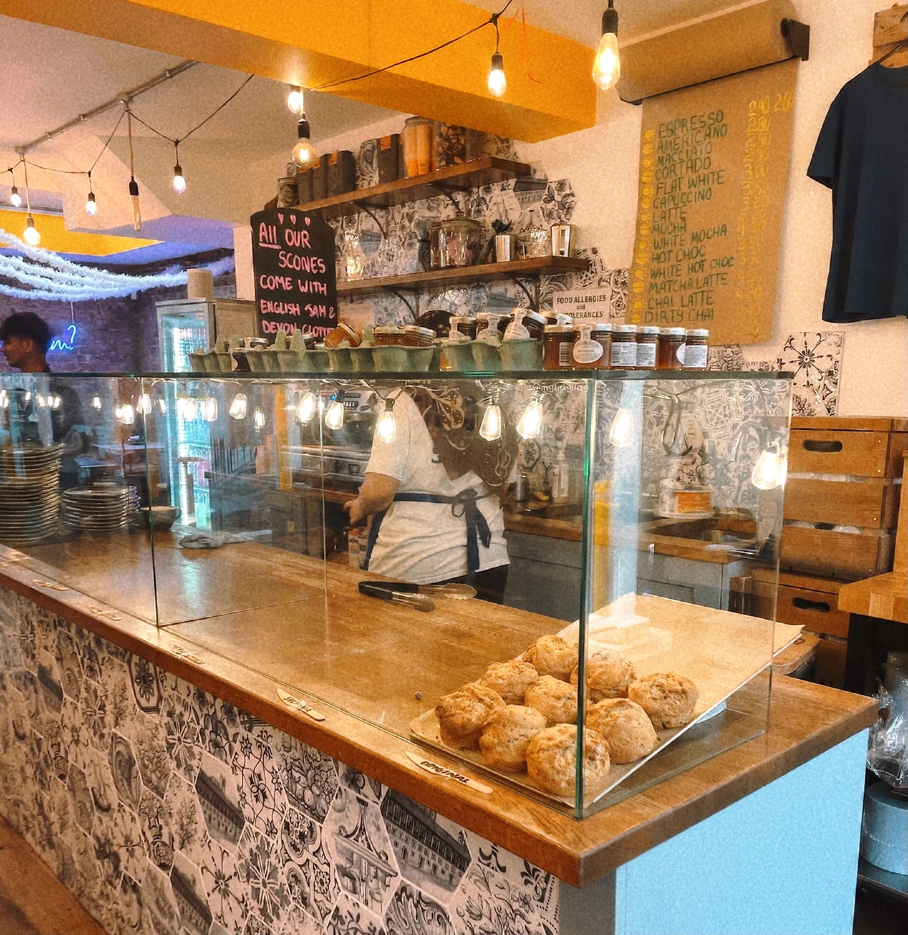 원래는 더 다양한 종류의 스콘들이 있는데 내가 방문한 시간대에는 대부분의 스콘들이 다 팔리고 보이지 않았다.