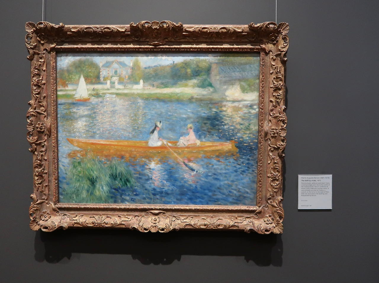 아래 그림은 너무나도 유명한 Pierre-Auguste Renoir(피에르 오귀스트 르누아르)의 <The Skiff>로, 역시 안내문에 따르면 조정 보트, 돛단배, 증기 기관차 등은 인상주의 화가들이 즐겨 그리던 소재였으며, 이 작품은 보트놀이로 유명했던 Chatou(샤투) 지역에서 그려졌을 것이라고 한다.
