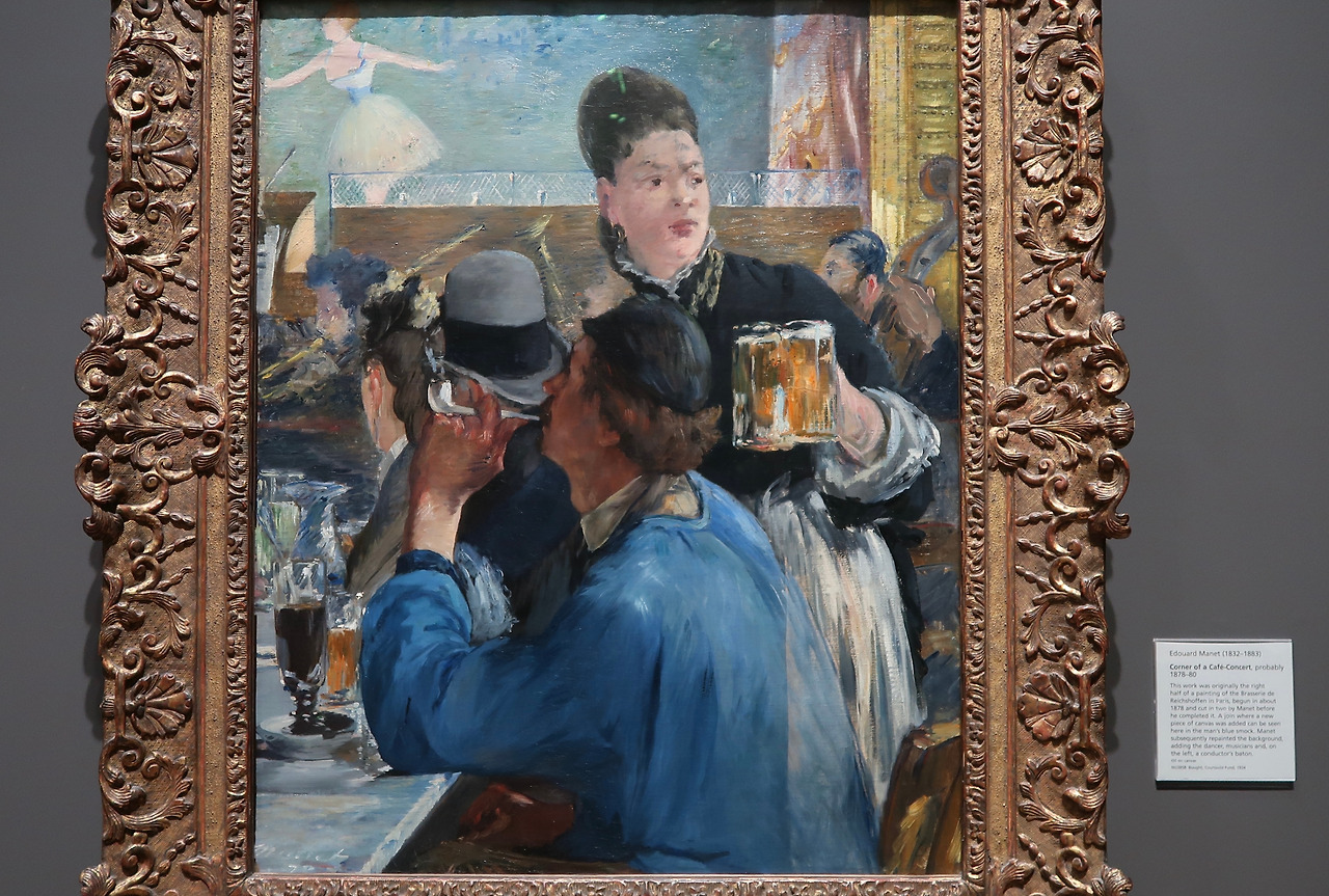 Edouard Manet(에두아르 마네)의 유명한 그림들 중 하나인 <카페 콩세르의 한 구석> (1878-80)도 걸려있다. 작품 옆에 달린 안내문에 따르면 이 작품은 원래 파리의 Brasserie de Reichshoffen을 묘사한 그림의 오른쪽 절반이었으며 그림을 완성하기 전에 두 부분으로 잘렸단다. 그림 속 남자가 입고 있는 파란색 옷에서 새 캔버스 조각이 덧붙여진 흔적이 보이고, 마네는 배경을 다시 그리면서 무용수와 음악가들, 지휘자를 추가해 그려 넣었다고 한다.