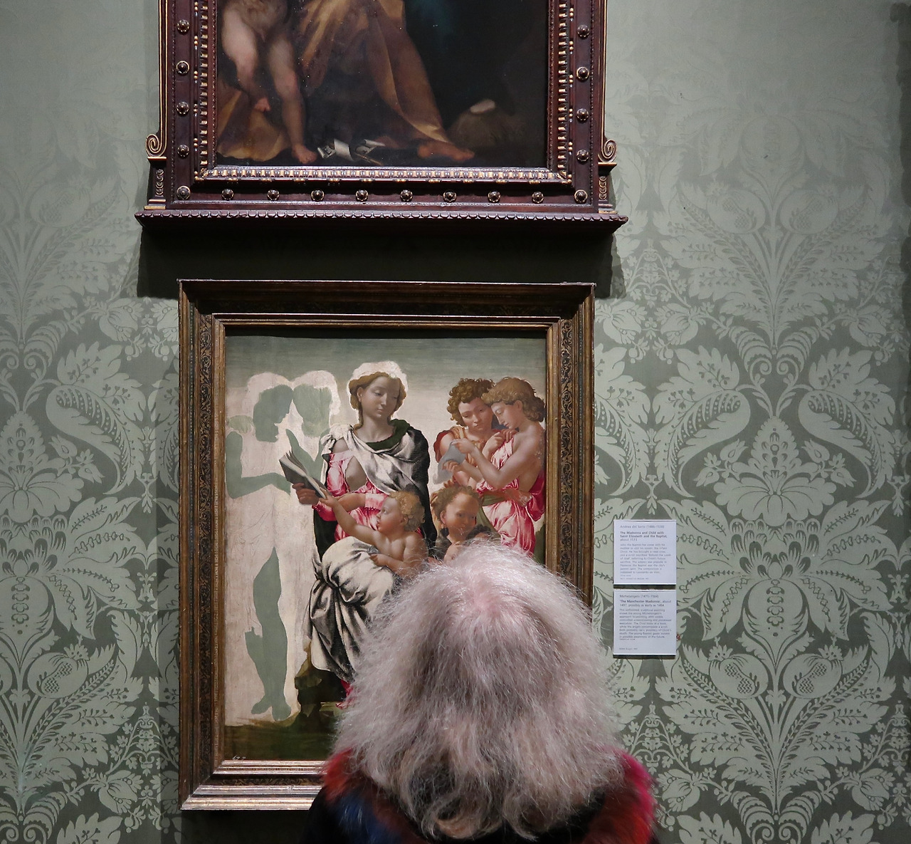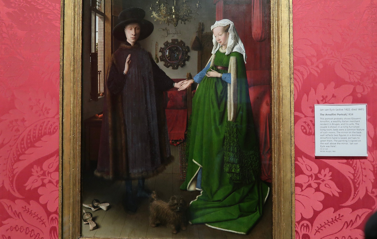 내셔널 갤러리를 방문하면 꼭 봐야 하는 작품들 중 하나인 Jan van Eyck(얀 반 에이크)의 <아르놀피니 초상> 앞에 사람들이 장사진을 치고 있었다. 설명에 따르면, 이 초상화는 Bruges에 거주하던 부유한 이탈리아 상인 Giovanni Arnolfini와 그의 아내를 그린 것으로 추정되며, 뒷벽에 있는 거울 속에는 문가에 서 있는 두 사람이 반사되어 있다. 아르놀피니가 손을 들어 올리고 있는 것은 아마도 그들을 맞이하는 동작일 가능성이 있으며, 거울 위 벽에는 "얀 반 에이크가 여기 있었다"라는 서명이 적혀 있다고 한다.