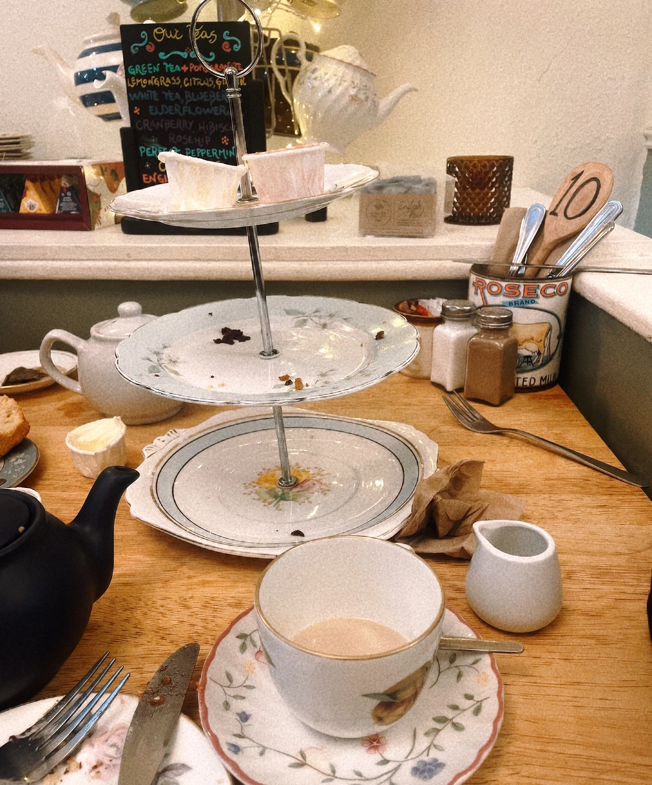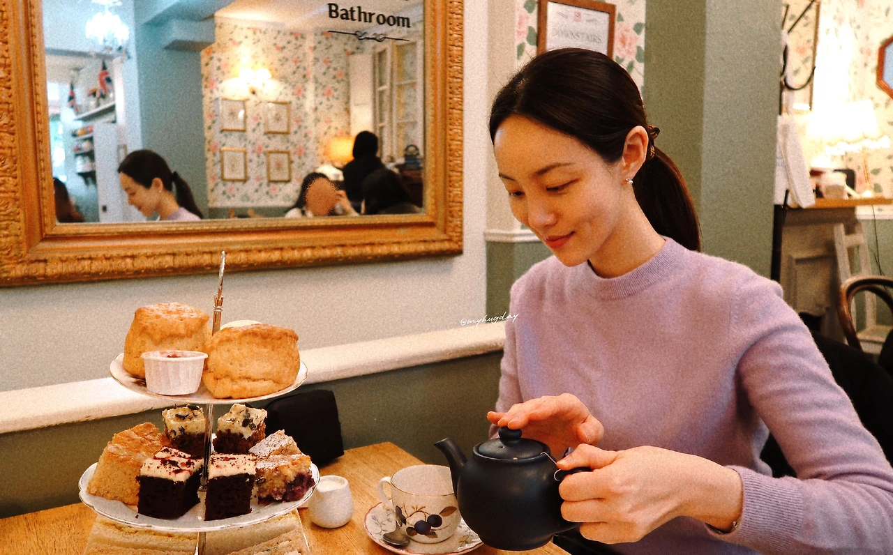 친구와 함께 서로 사진도 찍어 주었는데, 참고로 한국식 다도를 생각하고 티팟 리드에 손을 댔다가는 엄청난 뜨거움에 화들짝 놀라게 될 것이니 조심하는 게 좋다. 한국인인 나는 런던 생활 한달차까지는 차를 마실 때마다 항상 같은 실수를 반복했다. 습관이란 것은 참 무서워서 이토록 뜨거운 교육으로도 고치기 쉽지 않다.