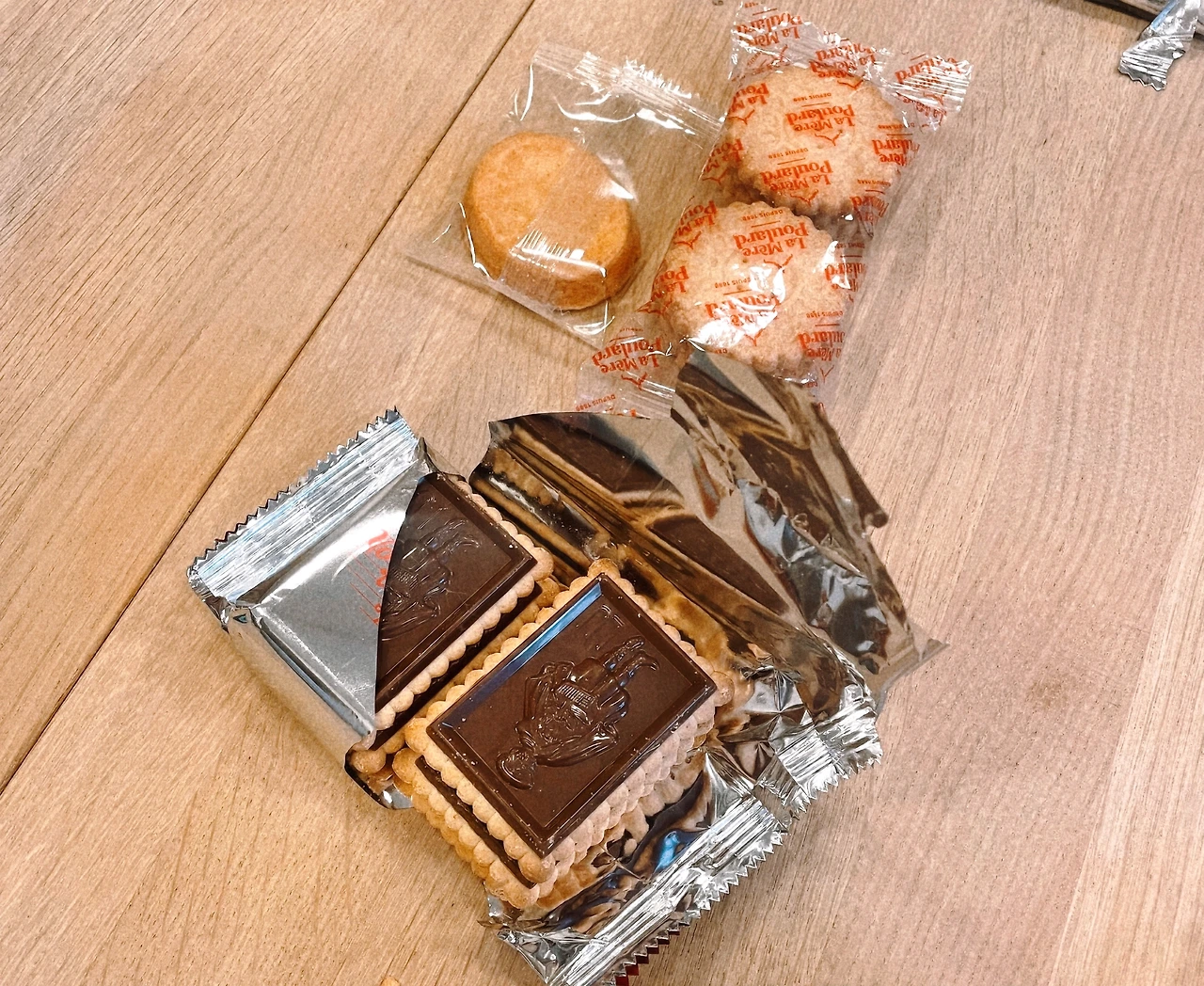 아침 식사를 마치고 프랑스산 과자들과 함께 식후 커피 시간을 즐겼다. 내가 산 것이 아니라서 (본마망 마들렌을 제외하곤) 정확한 제품명을 잘 모르겠지만 전부 다 맛있었다. 특히 저 동그란 비스킷이 적당한 단맛에 적당한 식감으로 정말 맛있었다. 초콜릿 비스킷은 맛있지만 내 입맛엔 너무 달게 느껴졌다.