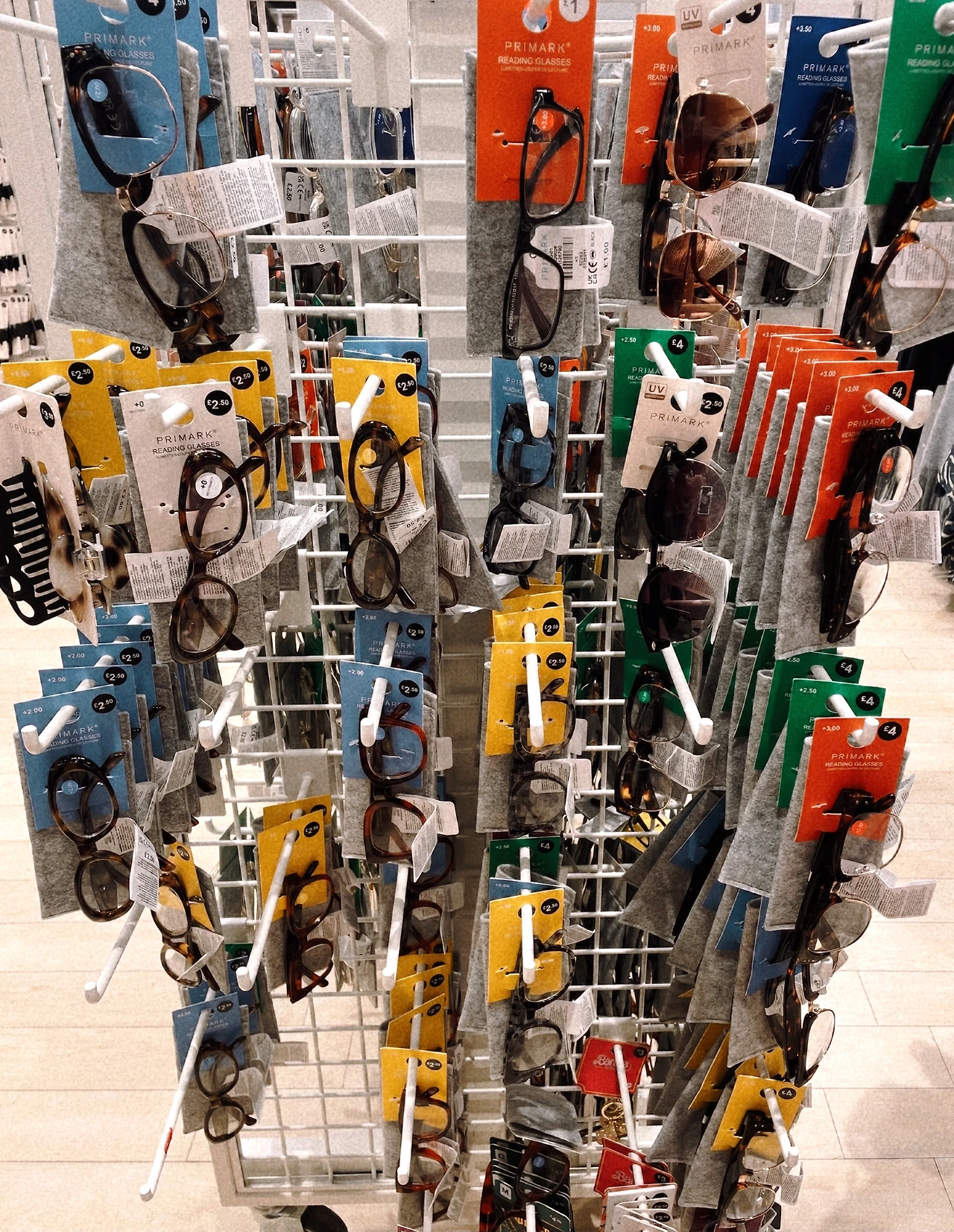 사실 소호에 온 이유는 안경테를 사기 위해서인데, 안경알은 필요 없고 테만 있으면 되어서 그냥 저렴한 Primark(프라이막)에 왔다. 정말 저렴해서 대충 쓰다가 잃어버려도 전혀 아쉽지 않을 것 같다. 그냥 집에서 아침에 부은 눈을 가릴 용도로 쓸 안경이라 대충 이 중에서 제일 크고 투박한 안경을 골랐다.