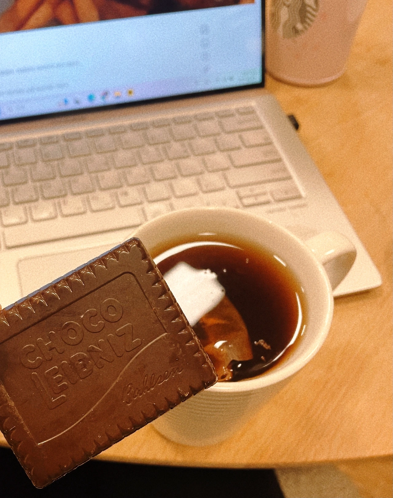 쿠키와 함께 티타임을 가졌다. 그동안 런던 일지도 쓰고, 공연 예매도 하면서 말이다. 아, 사진 속 쿠키는 얻어먹은 건데 엄청 맛있었다! 포장지 사진은 찍어두질 않았지만 아마도 Choco Leivniz일 것이다.