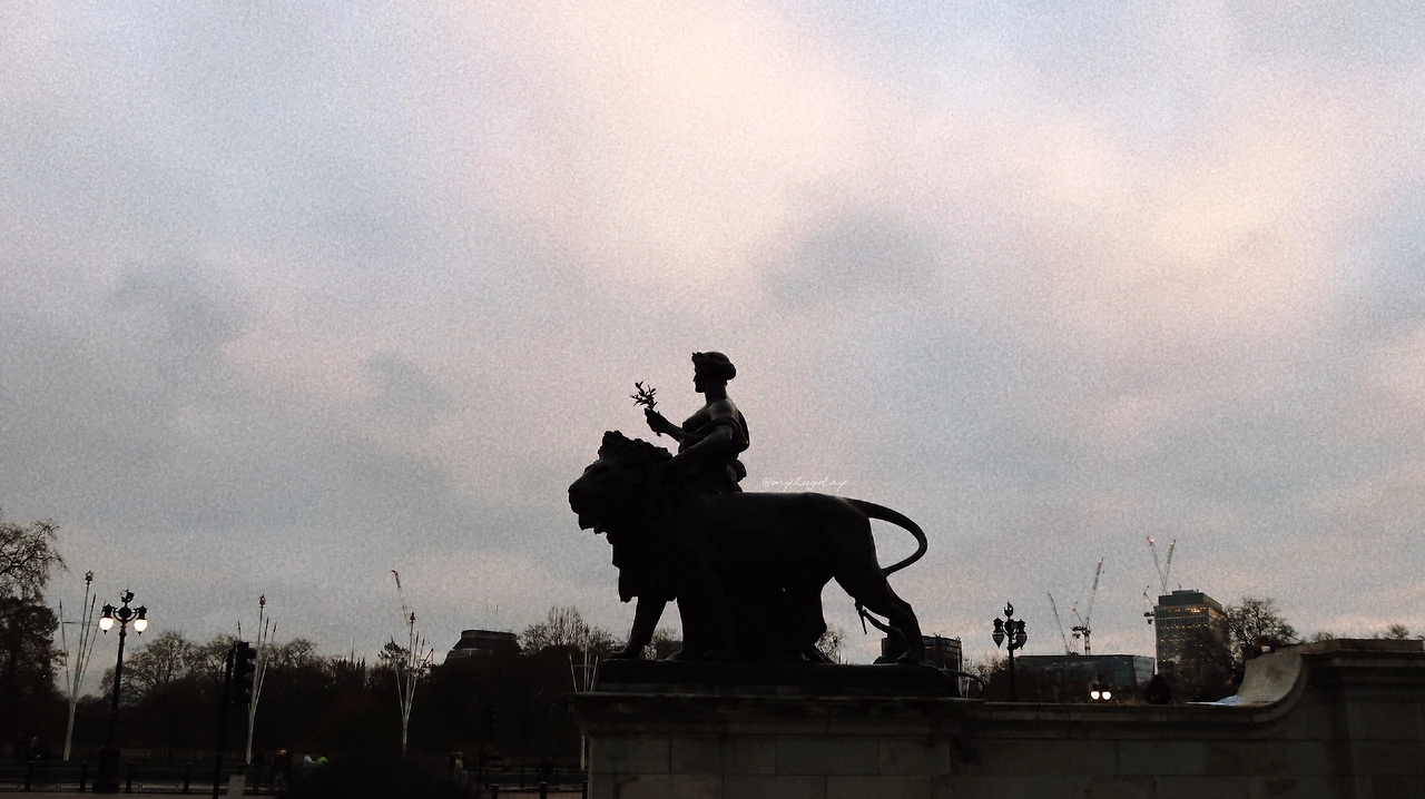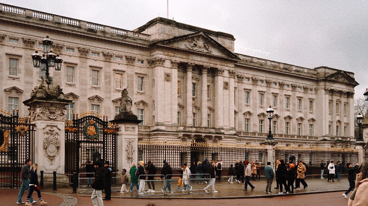 잉글리쉬로즈 카페는 Buckingham Palace(버킹엄궁전)과 매우 가까우므로 티타임을 마치고 궁전으로 향했다. 날이 흐리긴 했지만 금색의 Victoria Memorial(빅토리아 기념비)는 그 빛깔을 잃지 않고 잿빛 하늘 아래서도 여전히 눈에 띈다.