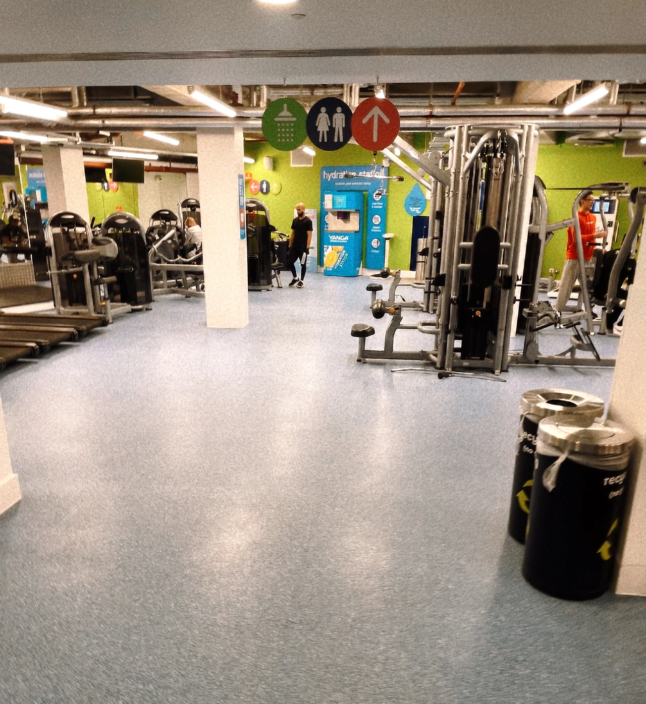 땅콩버터를 바른 빵과 양상추를 몇 접시 해 먹고 헬스장에 왔다. 혹시나 헬스장이 어떻게 생겼는지 궁금해하는 사람들이 있을지도 모르니 오늘은 구석구석 몇 군데의 사진을 찍어 보았다. 헬스장 전체 중 극히 일부일 뿐이지만 대략 이런 분위기임을 알 수 있다.