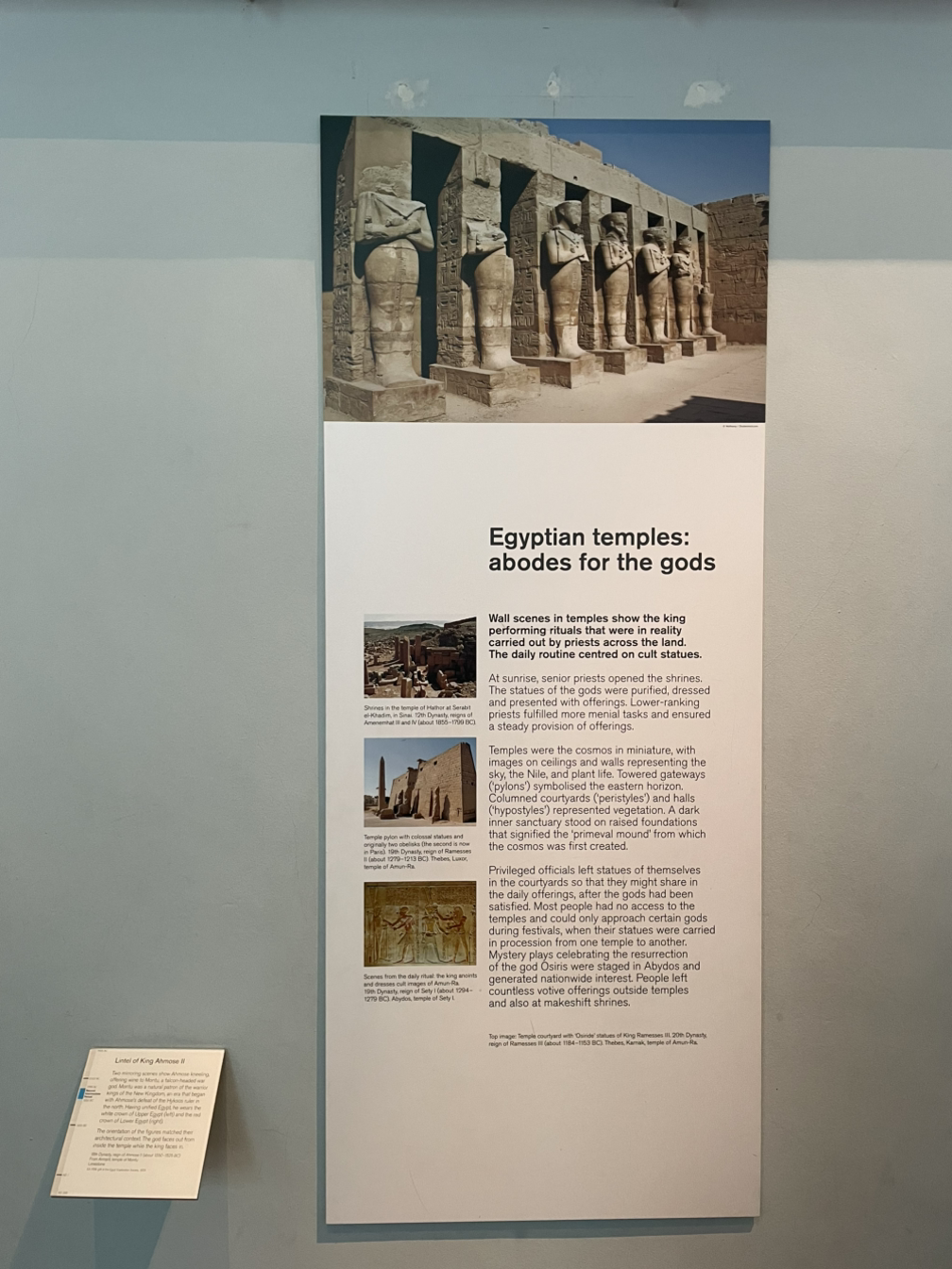 신비로운 이집트 문화의 큰 특징 중 하나인 고대 이집트 신전에 대한 설명이 나와있어서 매우 유익했다. 새삼 런던의 미술관이나 박물관들은 작품 하나하나 설명문을 함께 제시해 두어서 참 좋다는 생각이 든다.