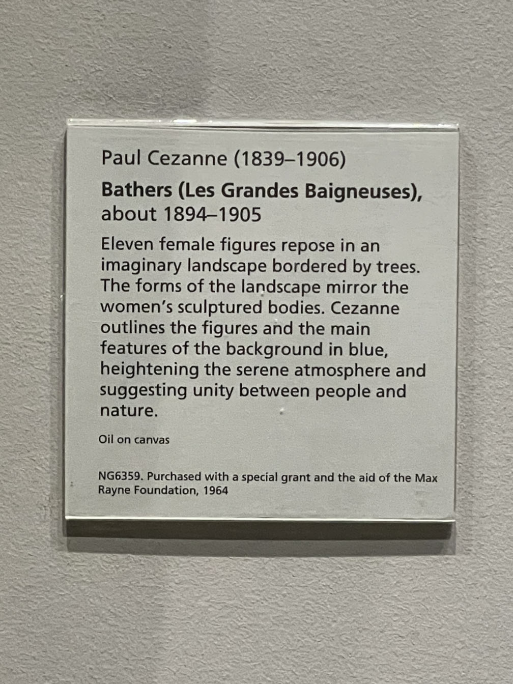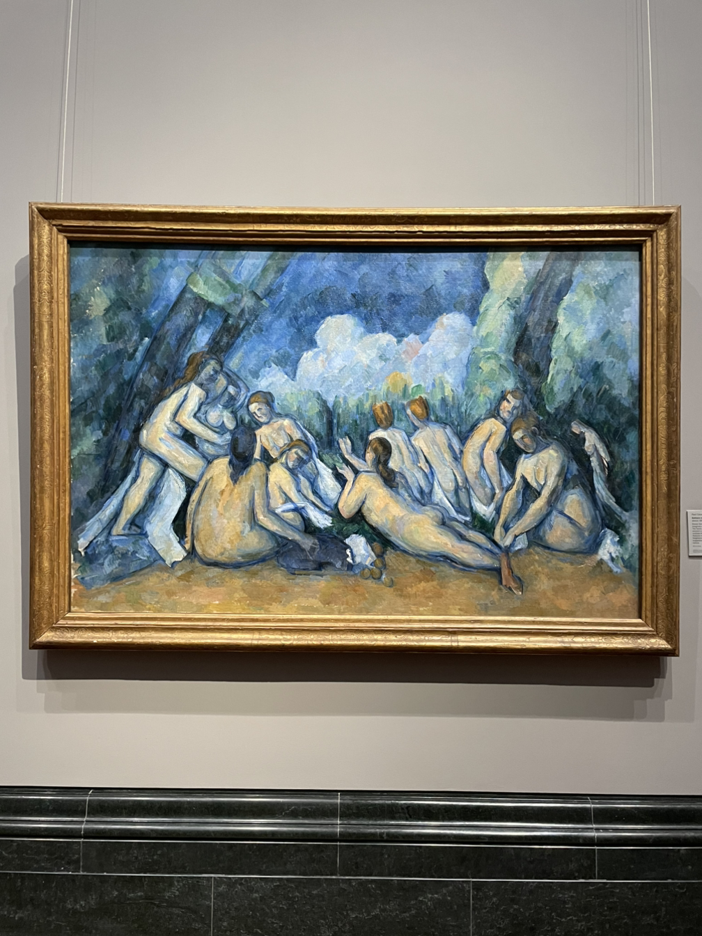 Paul Cezanne(폴 세잔)의 유명한 작품들 중 하나인 <목욕하는 사람들>. 삼각형을 이루는 풍경과 인물의 조화, 그리고 파란색의 고요한 분위기가 두드러지는 이 그림은 인간과 자연의 조화를 암시하고 있단다.