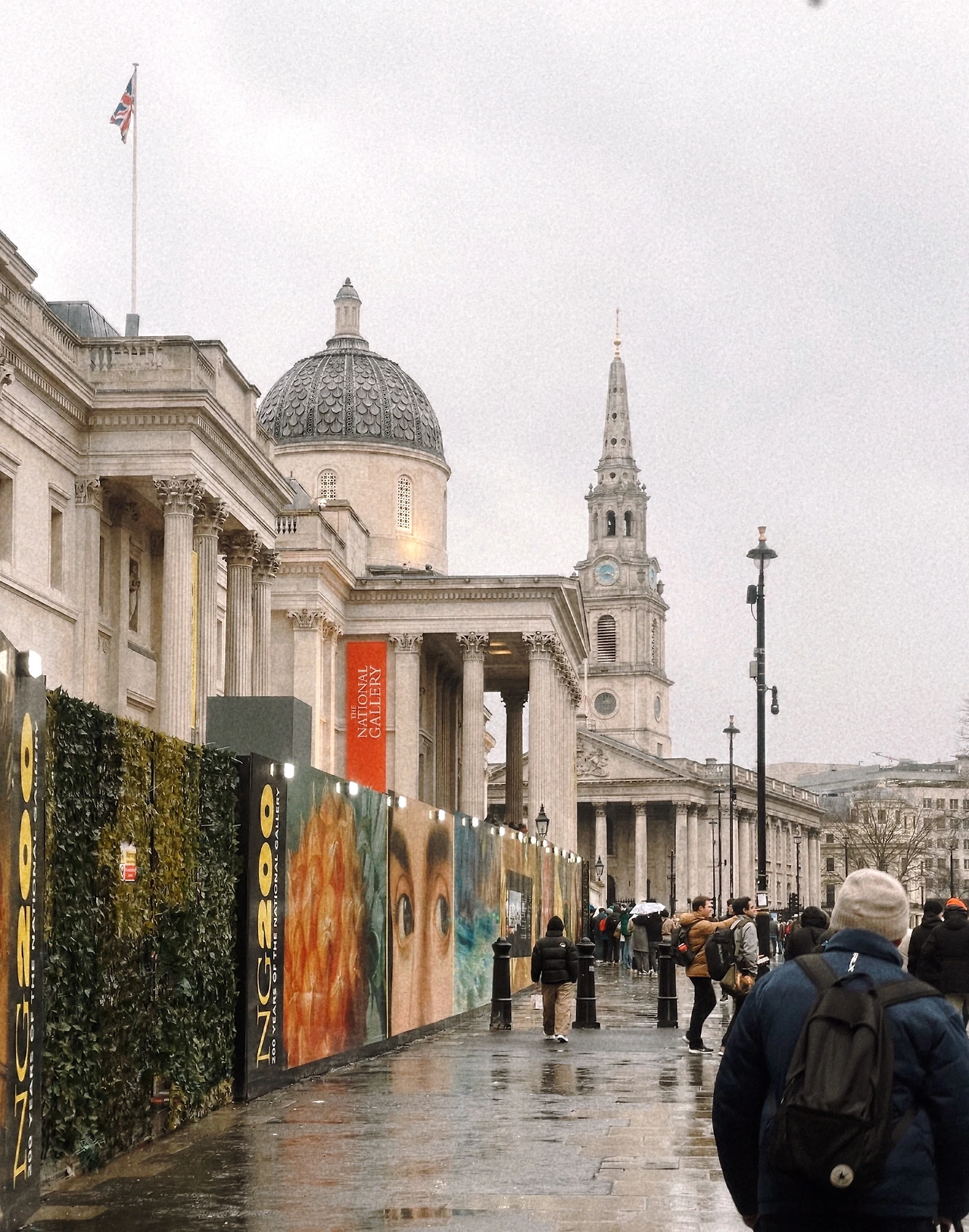 보슬보슬 아직도 내리는 비를 맞으며 내셔널갤러리로 향한다. 내가 너무나도 좋아하는 내셔널갤러리를 제 집 드나들 듯 틈만 나면 방문할 수 있다는 것이 런던살이의 큰 장점이다. 가도 가도 질리기는커녕 갈 때마다 새로운 내셔널갤러리. 미술관 앞에는 트라팔가 광장이 있고 뒤로는 번화가 골목이 펼쳐진다는 점도 참 매력적이다.
