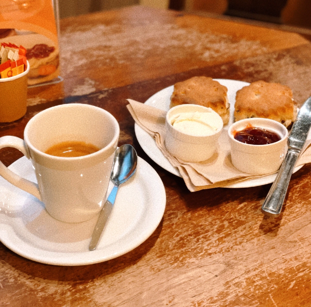 에스프레소와 스콘을 주문했다. 스콘 하나를 주문하면 스콘 두 덩이가 클로티드크림, 쨈과 함께 제공된다. 특별한 맛은 없는 스콘이지만 따뜻하게 데워서 주니 좋았다. 난 무엇이든 따뜻한 게 좋다. 물론 커피도 대개 따뜻한 커피만 마신다.(TMI)