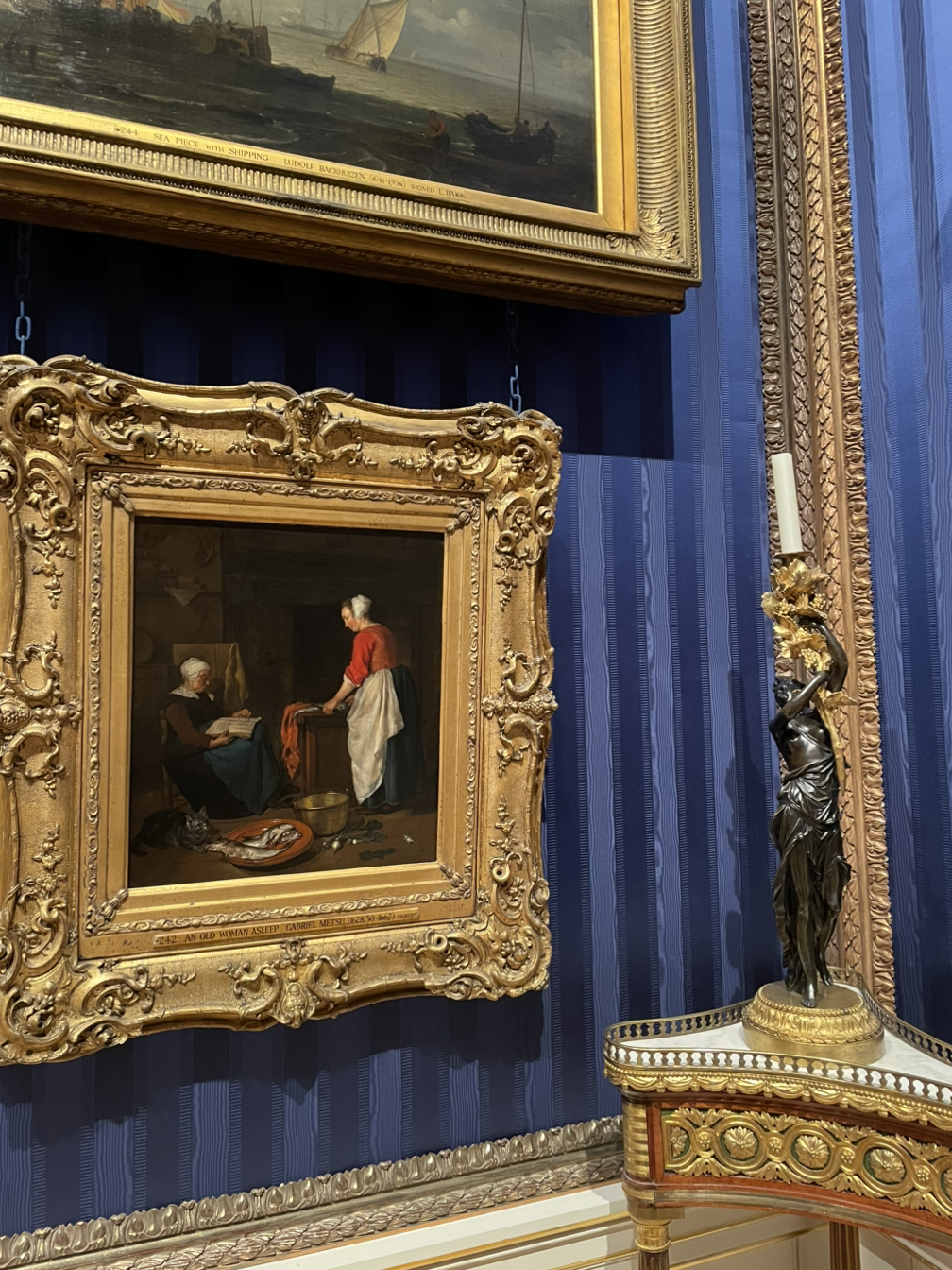 의자에서 잠이 들어버린 노인의 모습과 어두운 갈색을 활용하여 인생의 무상함을 그려낸 네덜란드 화가 Gabriel Metsu의 작품, 그리고 자신의 긴 인생 동안에 걸쳐 여러 점의 자화상을 그려냄으로써 스스로의 삶의 연대기를 만들었던 또 다른 네덜란드 화가 Rembrandt van Rijn(렘브란트)의 자화상이 눈에 띈다. 이곳에 걸린 자화상 속 렘브란트는 그가 자기 화풍의 정립을 위해 다양한 시도를 하며 노력했을 젊은 시절의 모습이다.