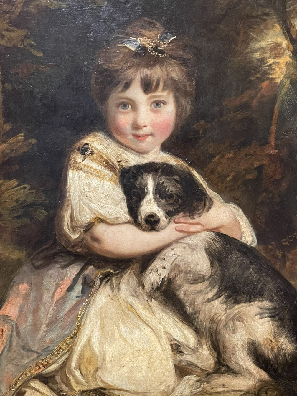 소녀의 천진난만한 눈망울과 붉게 물든 오동통한 뺨, 그리고 소중하게 강아지를 끌어안고 있는 앙증맞은 손을 보라.