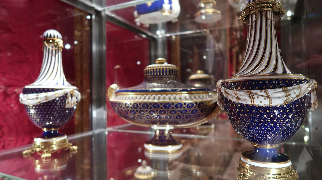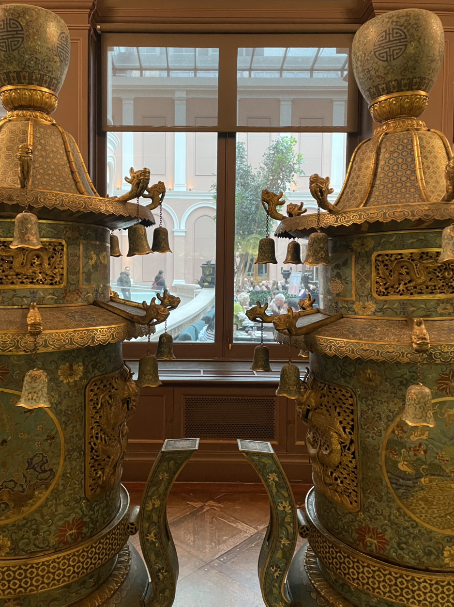 이 크고 화려한 물건은 어느 용도로 쓰이는 것인지는 잘 모르겠으나 아마 실용 목적보다는 장식용 물건이지 않을까 생각한다. 동아시아 문화예술로부터 매우 짙은 영향을 받은 것 같은 디자인이다. 어쩌면 그쪽에서 수입해 온 물건일 수도 있겠다.