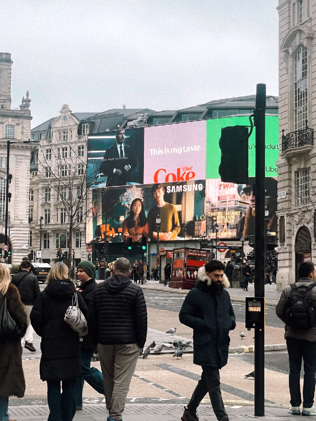 Piccadilly Circus(피카딜리 서커스)에 다다르자 커다란 전광판에 띄워진 삼성 광고가 눈에 딱 보여서 찍었다. 한국인으로서 이런 것 보면 그냥 못 지나치지.