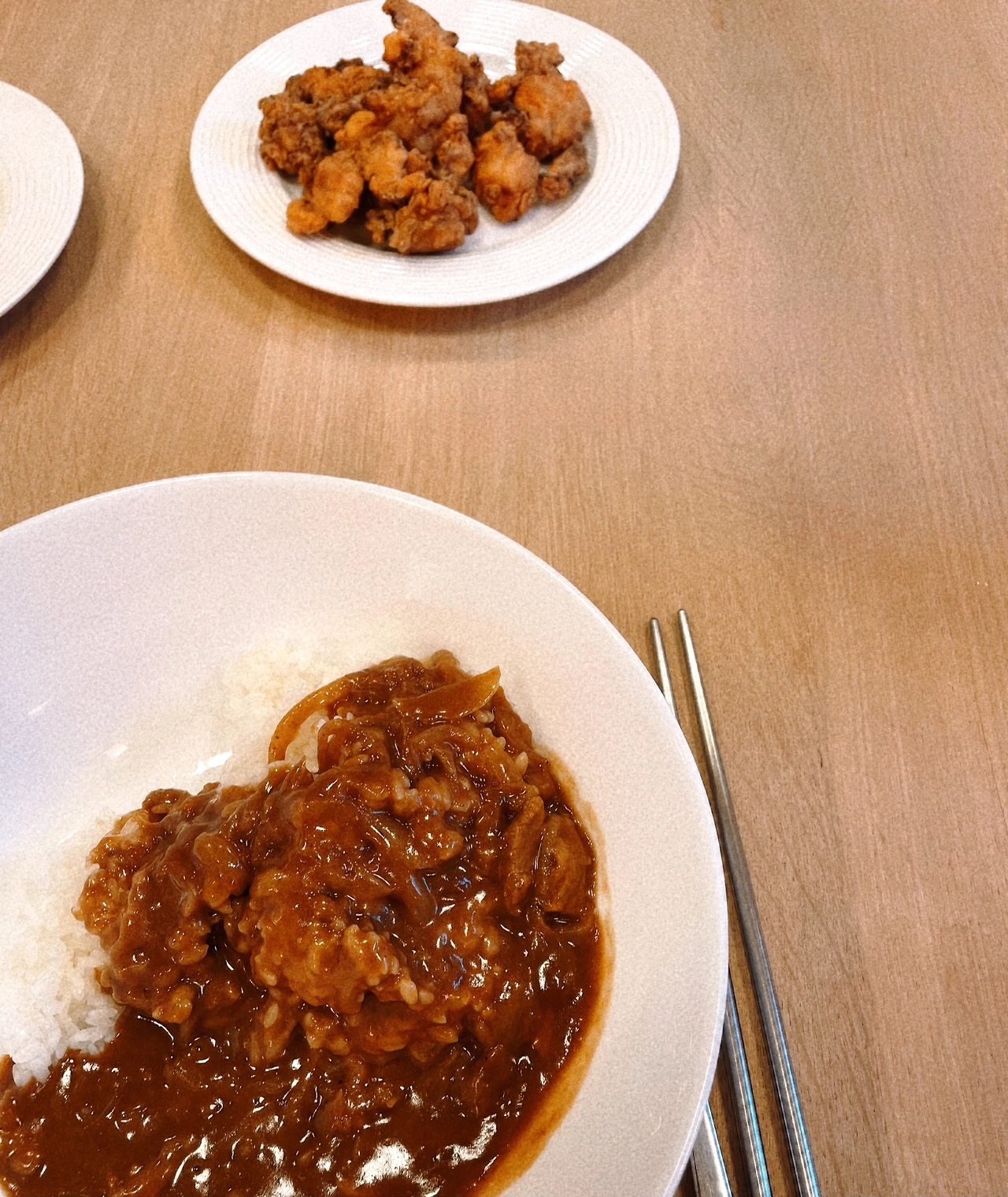 오늘의 아침식사 메뉴는 치킨 가라아게와 일본식 카레라이스다. 신발도 튀기면 맛있다는 말이 있듯이 닭고기를 튀겼는데 맛이 없을 리가! 없어지는 밥알 한 알 한 알을 아까워하며 그릇을 싹싹 비웠다.