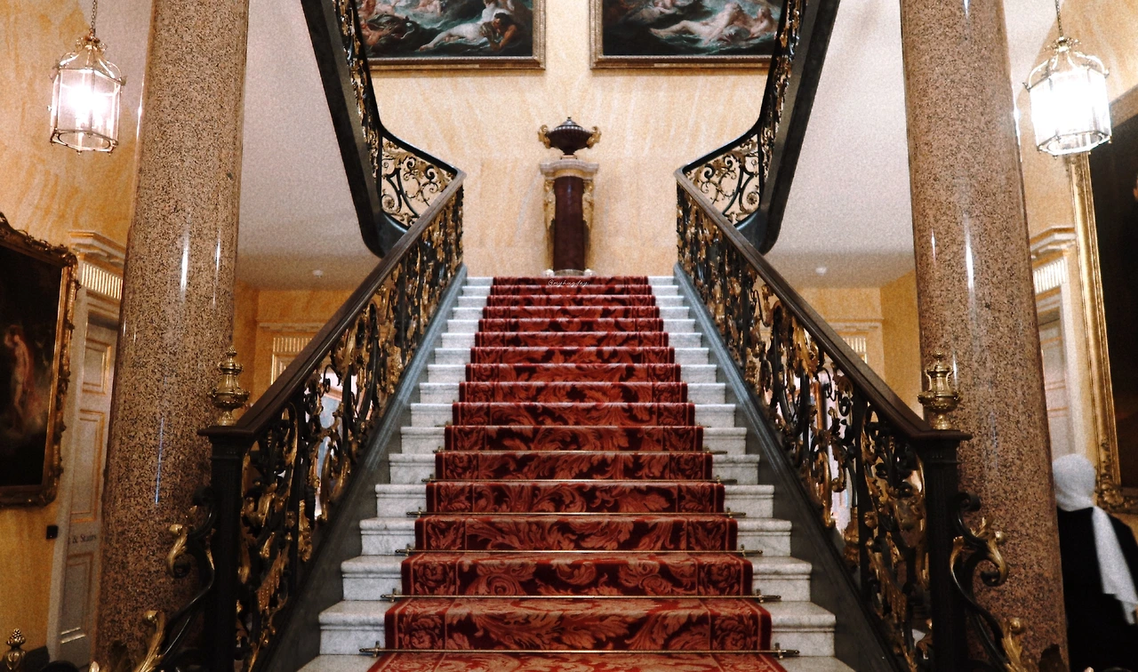 들어가자마자 화려한 계단을 중심으로 고풍스러운 인테리어가 펼쳐진다. 좌우 대칭을 이루는 계단 인테리어에서 그 건물이 지어지던 조지안시대의 양식이 엿보인다. 뿐만 아니라, 장식적이고 우아하며 화려한 모습에서 로코코 양식도 동시에 느낄 수 있다. 영국과 프랑스, 두 화려함이 만나 아름다운 내부를 이루고 있는 Wallace Collection이다.