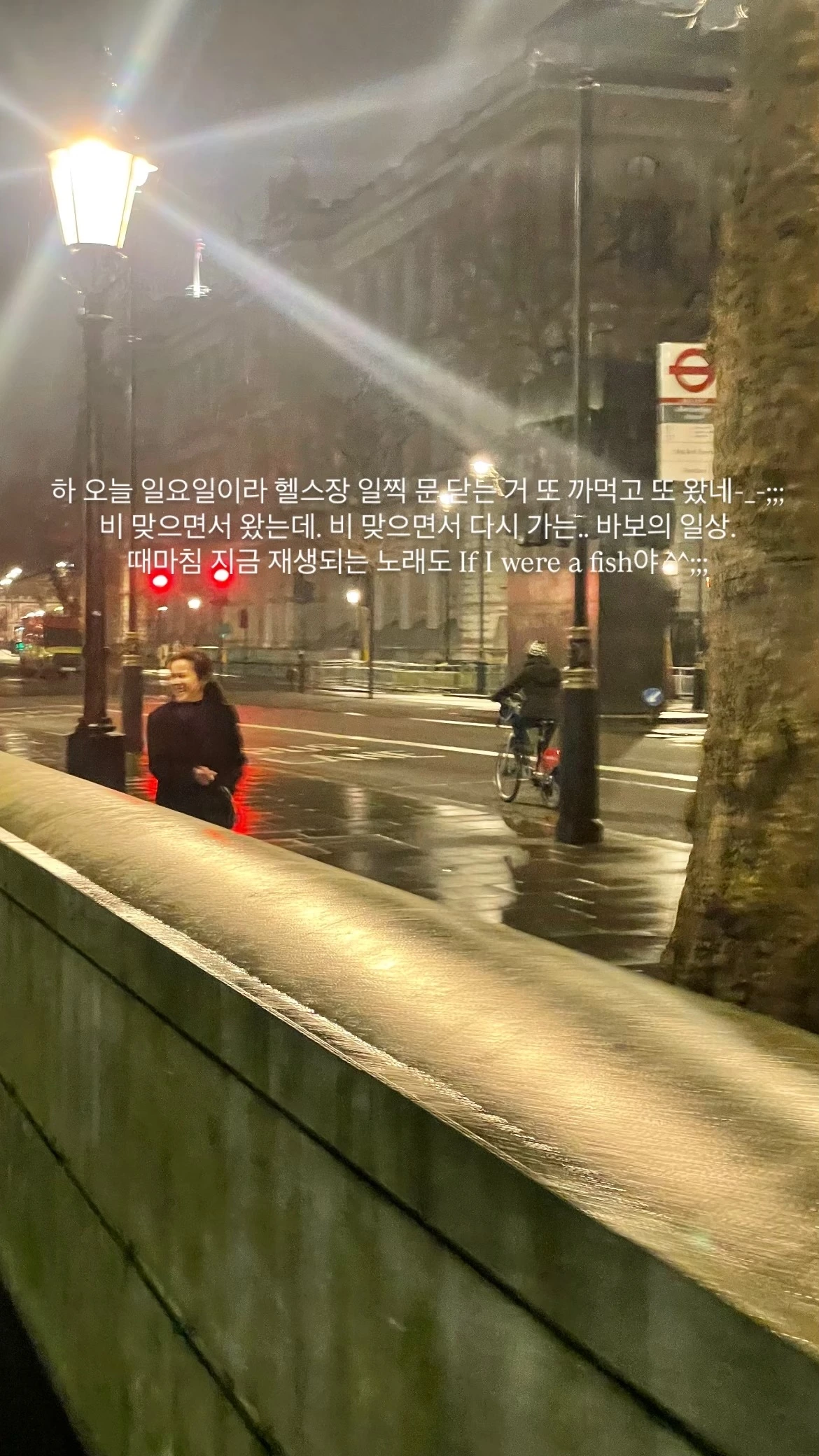 고열량, 고지방의 식사를 마친 후 양심상 걸어서 집에 돌아왔고, 도착하자마자 곧바로 이어서 운동복으로 갈아입고 헬스장으로 향했으나, 한창 걸어가던 중 오늘은 일요일이라 헬스장이 일찍 문 닫는다는 사실을 뒤늦게서야 떠올렸다. 터덜터덜 빗속을 헤치고 도로 집으로 걸어가는데 때마침 나의 플레이리스트가 ‘If I were a fish’라는 노래를 들려주었다. 정말이지 멍청한 물고기가 된 듯한 기분이 들었다. 물론 이 곡은 오히려 높은 자존감을 노래하고 있지만, 난 이 상황에서 그저 “If I were a fish”라는 문구에만 꽂힌 것이다. 오늘 저녁때 친구와 고열량의 식사를 할 것은 일찍이 확정된 일이었고, 따라서 귀가 후 헬스장에서 지방을 연소시킬 계획을 품고 있었는데 바보같이 헬스장 문 닫는 시간을 깜빡하여 그 계획이 어그러진 것이다. 결국 나는 많이 먹고 운동은 안 한 사람이 된 것이다. 자책감이 조금 들었지만 곧바로 “이런 수퍼돼지 같은 날도 있는 거지 뭐”라고 생각을 바꿨다. 인생은 마라톤이다. 단거리 경주가 아니라 장거리 경주이니 오늘 하루쯤 페이스 조절에 대실패 했다고 하더라도 내일부터 다시 보통의 페이스를 찾아가면 될 것이다. 런던에 머무는 동안 통제력 강한 나의 J적 성향이 많이 누그러지고 있는 것 같은 기분이 든다. 물론 좋은 의미이다. 인생에는 매 순간 수많은 변수가 개입하는데 강한 통제 성향을 가진 사람들은 이 변수들을 통제하고자 시도하는 과정에서 필연적으로 스트레스를 받을 수밖에 없기 때문이다. 물론 타고나길 통제 과정, 즉 계획 수립과 이행을 즐기는 성향이지만, 그래도 통제에 실패하는 상황에서는 어쩔 수 없이 스트레스를 받게 된다. 그런데 이러한 성향이 조금씩 완화되고 있는 느낌이랄까. 아마도 눈앞에 당장 데드라인이라는 것이 존재하지 않는 장기 여행자라는 처지에서 오는 심적 여유 때문이겠지. 뭐가 됐든 내 안에서 좋은 변화가 이뤄지고 있는 것 같아서 기분이 좋다!