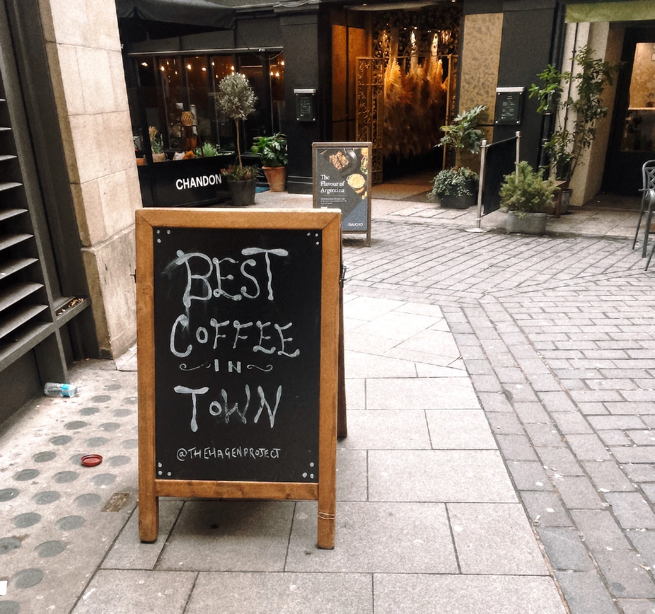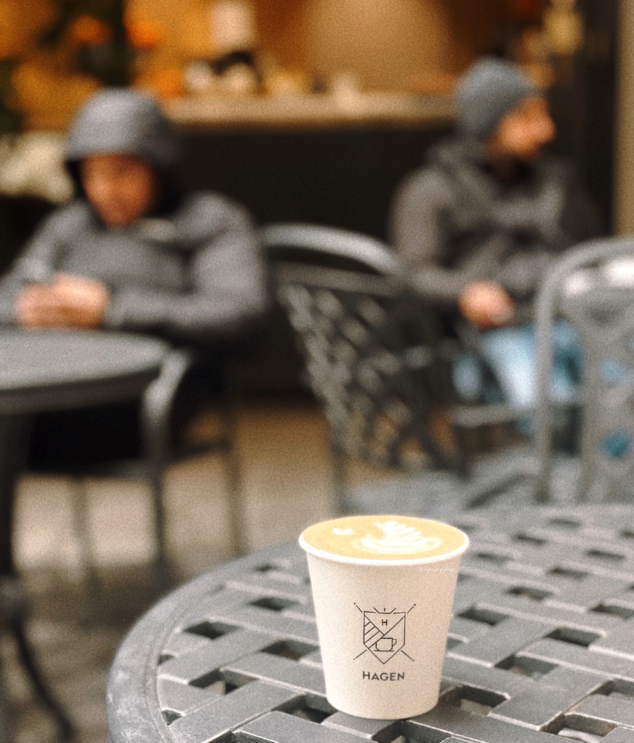 지나가다가 "Best Coffee in Town"이라는 문구에 훅 낚여서 들어와 본 골목 안 작은 카페 Hagen Espresso Bar. 이때까지만 해도 몰랐는데 (나중에 글을 쓰다 보니 알게 됐지만) 전에 자연사박물관 가기 전 들렀던 카페와 같은 브랜드였다. 그런데 그때 마셨던 커피와 꽤 다르게 느꼈던 것으로 보아 역시 같은 원두로도 누가 내리느냐에 따라 천차만별일 수 있음을 다시 한번 깨닫는다. 쌀쌀한 편임에도 불구하고 많은 사람들이 노천석에서 시간을 보내고 있었다. 그 자유로운 모습이 좋아 보여서 추위에 젬병인 주제에 자신만만하게 나도 노천석에 앉아야겠다 생각하고 카페로 향했다.