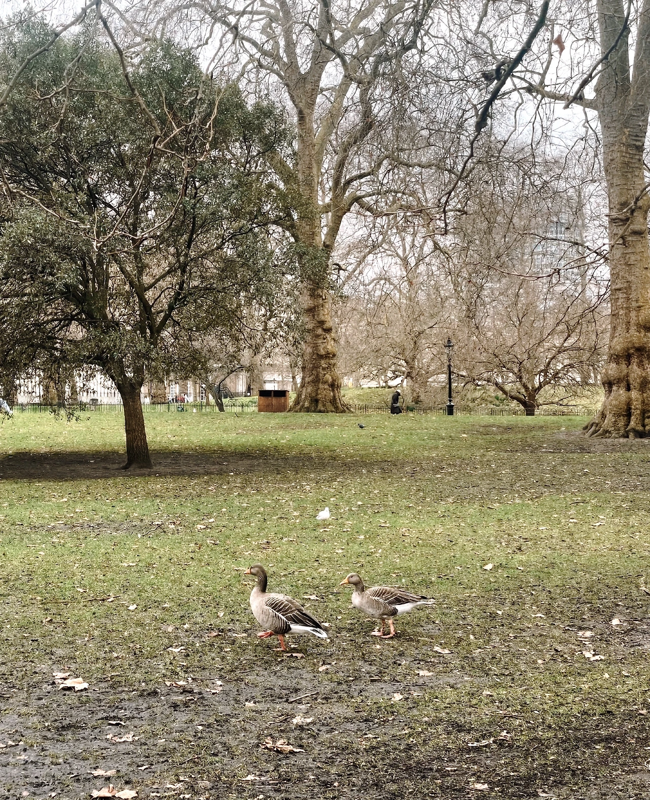 무리 지어 다니면서 푸드덕푸드덕 사람을 향해 날아드는 비둘기들은 무섭지만 얌전하게 잔디밭 위를 종종종 걸어 다니는 오리들은 그저 신기하고 귀엽다. 바닥에 먹이라도 있는 것인지 다들 땅만 보고 걷고 있다. 오리들은 고개 숙여 땅만 보며 걷고, 사람들은 고개 숙여 핸드폰만 보며 걷는구나.