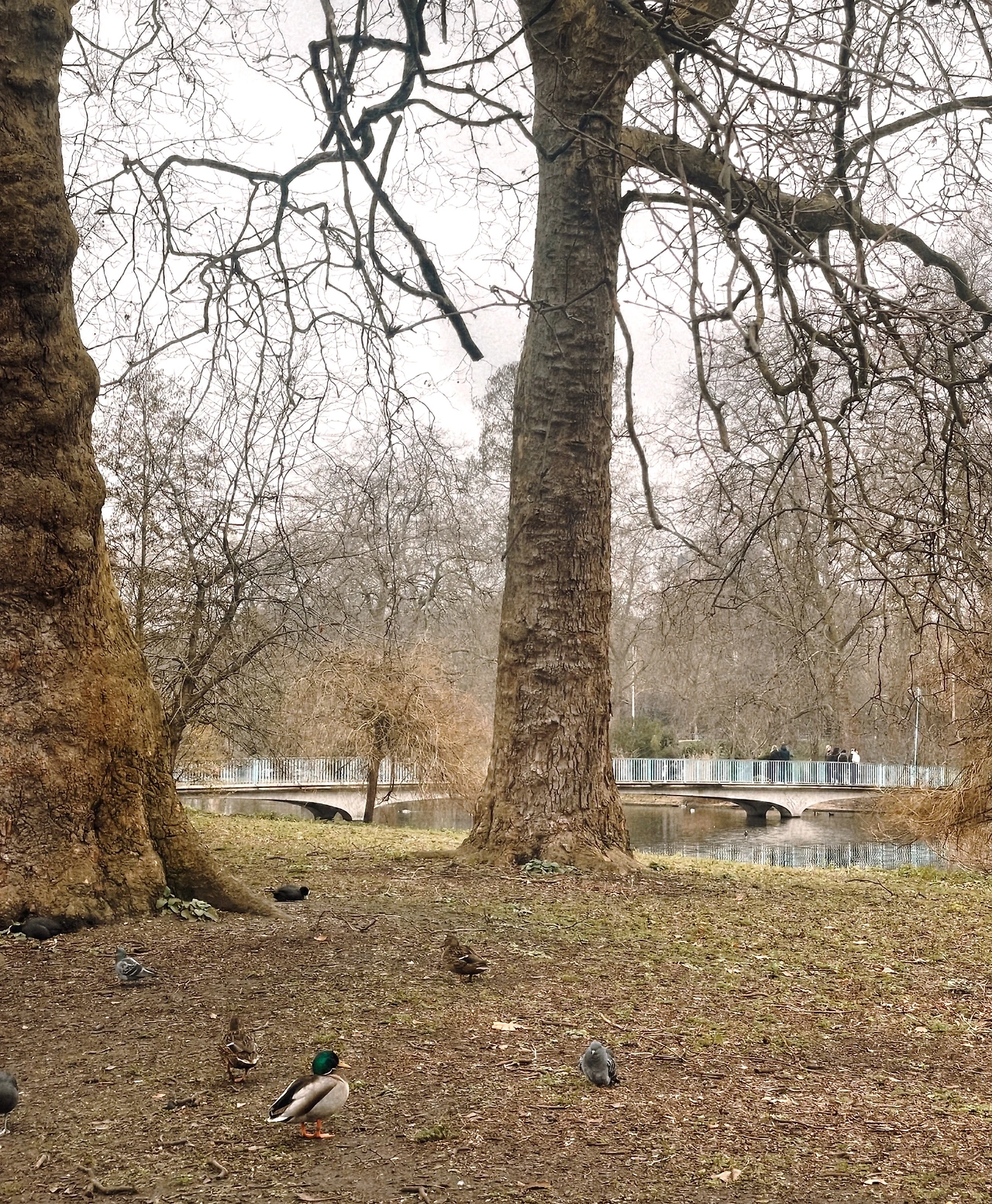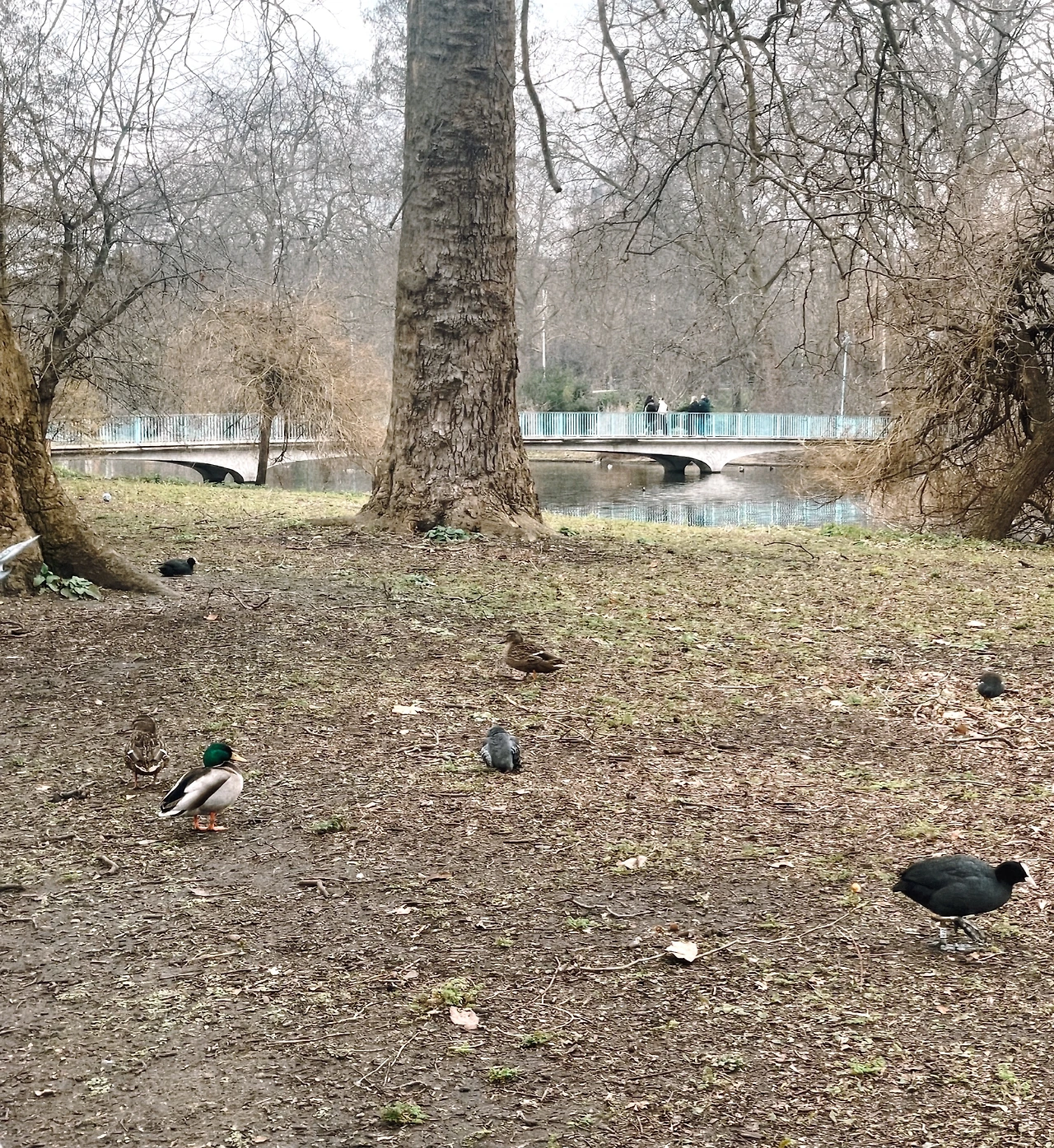집에서 가까운 St. James Park(세인트제임스공원)에 산책을 하러 왔다. 버킹엄궁전과 맞닿아있다시피 한 공원이어서 그런지 깔끔하고 아기자기하게 잘 관리되어 있으며, 부지가 꽤 넓어서 여유롭게 산책을 즐기기에도 좋다. 연못가에 돌아다니는 다양한 종류의 오리들과 잔디밭을 쪼르르 뛰어다니는 다람쥐들을 구경하는 재미도 쏠쏠한 공원이다.