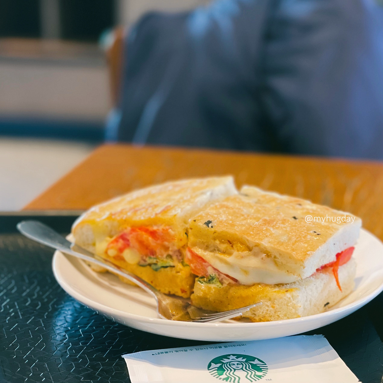 이러한 이유로 인해서 일주일 넘게 저녁마다 허탕을 쳤는데, 어젯밤에는 잠자리에 누워 잠들기 직전까지 이 샌드위치에 대한 갈증으로 앓는 지경에 이르렀고, 빨리 이 욕구를 해소해 버리고 평정심을 되찾아야겠다(?)는 생각에 오늘, 아침 운동을 마치고 곧장 스타벅스로 달려왔다.