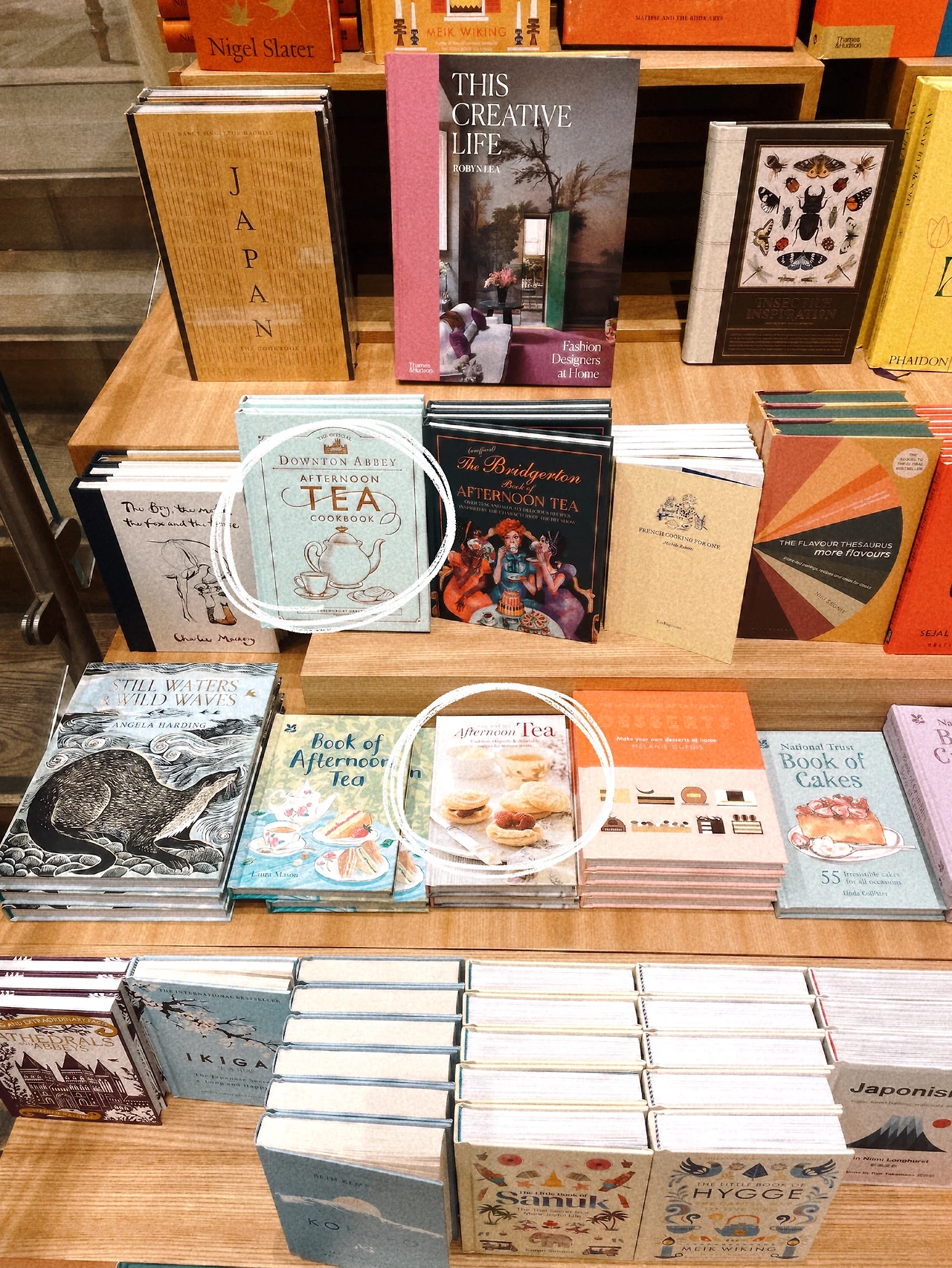 아래 그림에서 하얀 동그라미를 친 두 권의 책을 구매했다. 집에서도 나만의 즐거운 애프터눈티타임을 즐기기 위해 엄선한 레시피책이다. 이 책에 있는 레시피들을 하나하나 시도해 볼 생각에 벌써부터 기쁘고 설렌다. 집에서 혼자 음악을 들으며 갖는 티타임은 나와 같은 내향인에게 최고의 힐링 시간이다.