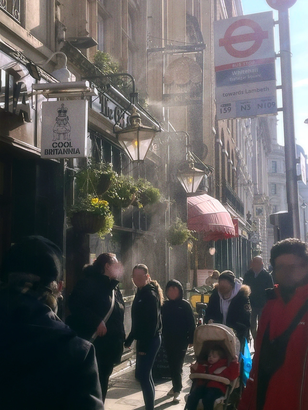 어느 한 펍 앞을 지나가고 있는데 느닷없이 허공에 물안개가 가득 지기 시작했다. 건물의 2층 주민이 창밖을 향하여 갑자기 스프링클러를 가동한 것이다. 그 아래에 서 있던 행인들은 영문도 모르고 물을 맞게 되었는데 이 만화 같은 광경이 어찌나 웃기던지 나를 포함하여 지나가던 모든 사람들이 다 함께 와하하 웃었다. 햇살을 받아 반짝반짝 빛나는 작은 물방울들이 허공에 가득 흩날리고, 그 아래에서 사람들은 다 같이 어린아이처럼 싱글벙글해하는 풍경이 왜인지 평화롭게 느껴졌다. (하지만... 그 사람이 창 밖에 물을 뿌린 이유는 아직까지 그 누구도 모른다.)
