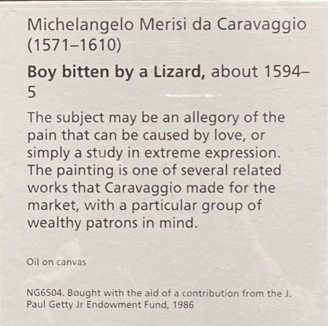 카라바조의 너무나도 유명한 작품 <도마뱀에 물린 소년>이다. 올 때마다 한참을 들여다보고 가곤 하지만 카라바조의 작품은 어쩐지 봐도 봐도 질리지 않는다.