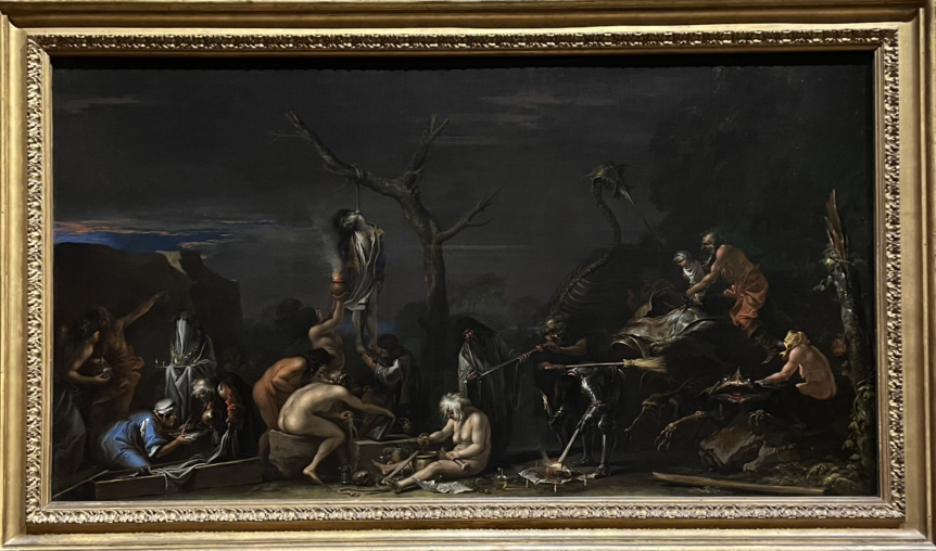 기괴하고 기묘한 분위기의 이 그림은 Salvator Rosa(살바토르 로사)가 그린 <마녀들이 주문을 외우는 모습>이다. 그림 속 마녀들은 어둠 속에서 묘약을 만들고 주문을 외고 있으며, 이외에도 잔혹하고 기괴한 장면들이 곳곳에 함께 배치되어 있다. 로사는 화가이자 시인이며 연극배우이기도 했다는데, 이 작품을 그리던 때쯤 <La Strega(마녀)>라는 시도 쓴 바 있다고 한다. 이때 당시 로사는 어떠한 불안을 겪고 있었던 것일까?