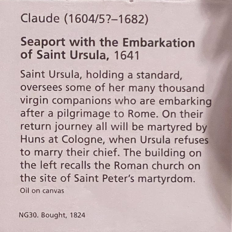 아래는 Claude(클로드 로랭)의 대표작 중 하나인 <성 우르술라의 배 출항이 있는 항구 풍경>이다. 특유의 색감 및 빛 표현, 그리고 삼각형 구도를 그림 속에 담아냈던 클로드 로랭은 Turner(터너)의 작품 스타일에도 많은 영향을 주었던 화가로 알려져 있다.