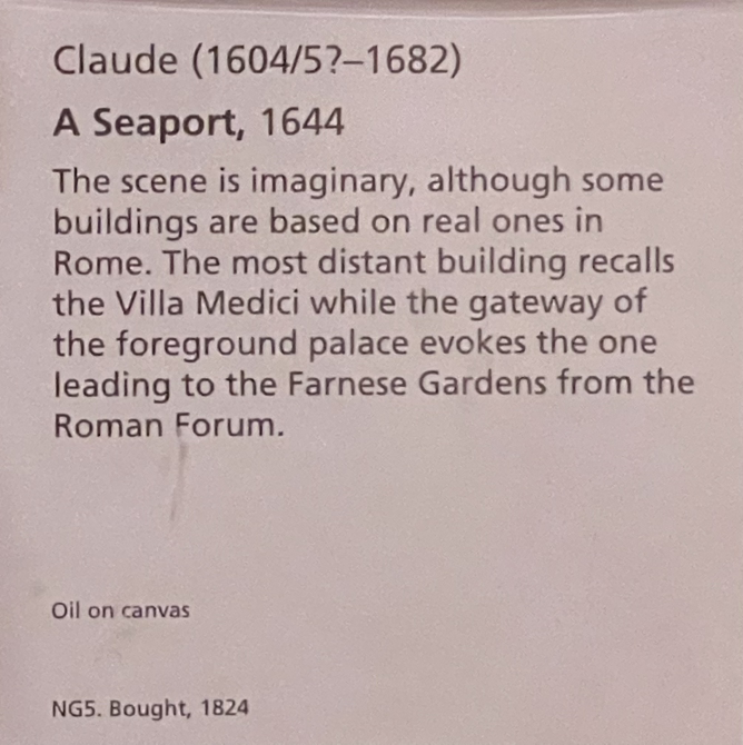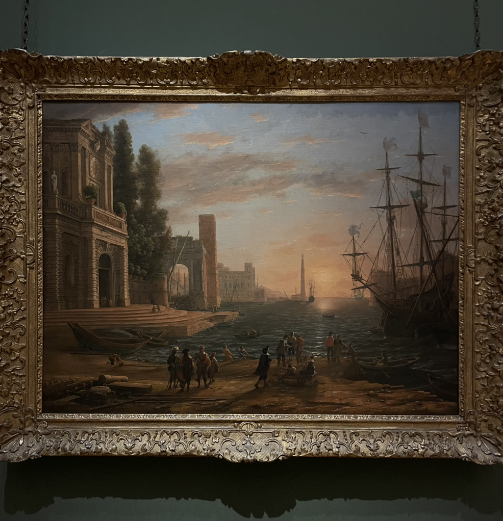 클로드의 아름다운 화풍이 드러나는 또 다른 작품 <항구>이다. 그림 속의 풍경은 실제로 존재하는 장소가 아닌 가상의 장소를 그린 것이지만 로마에 실제로 존재하는 건물들을 본떠 풍경 내에 배치함으로써 이상에 현실성을 더하였다.