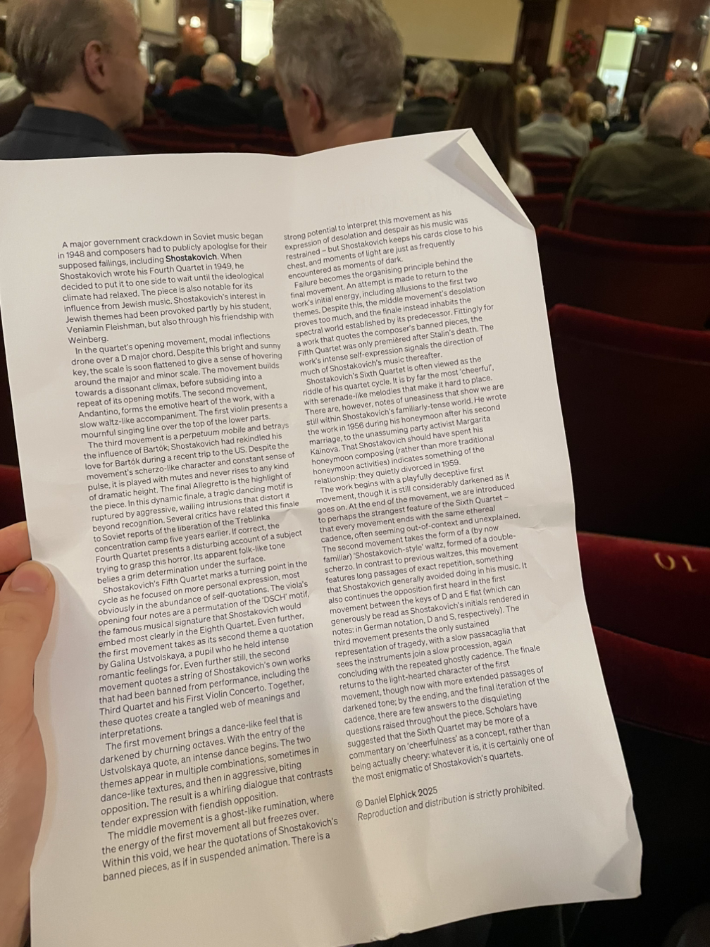 런던 위그모어홀에서, 내가 좋아하는 쇼스타코비치의 음악을, 쇼스타코비치 연주에 능한 우수한 현악사중주단이 들려주는 공연이라니, 기대와 기쁨으로 가득 차지 않을 수가 없는 저녁이었다.