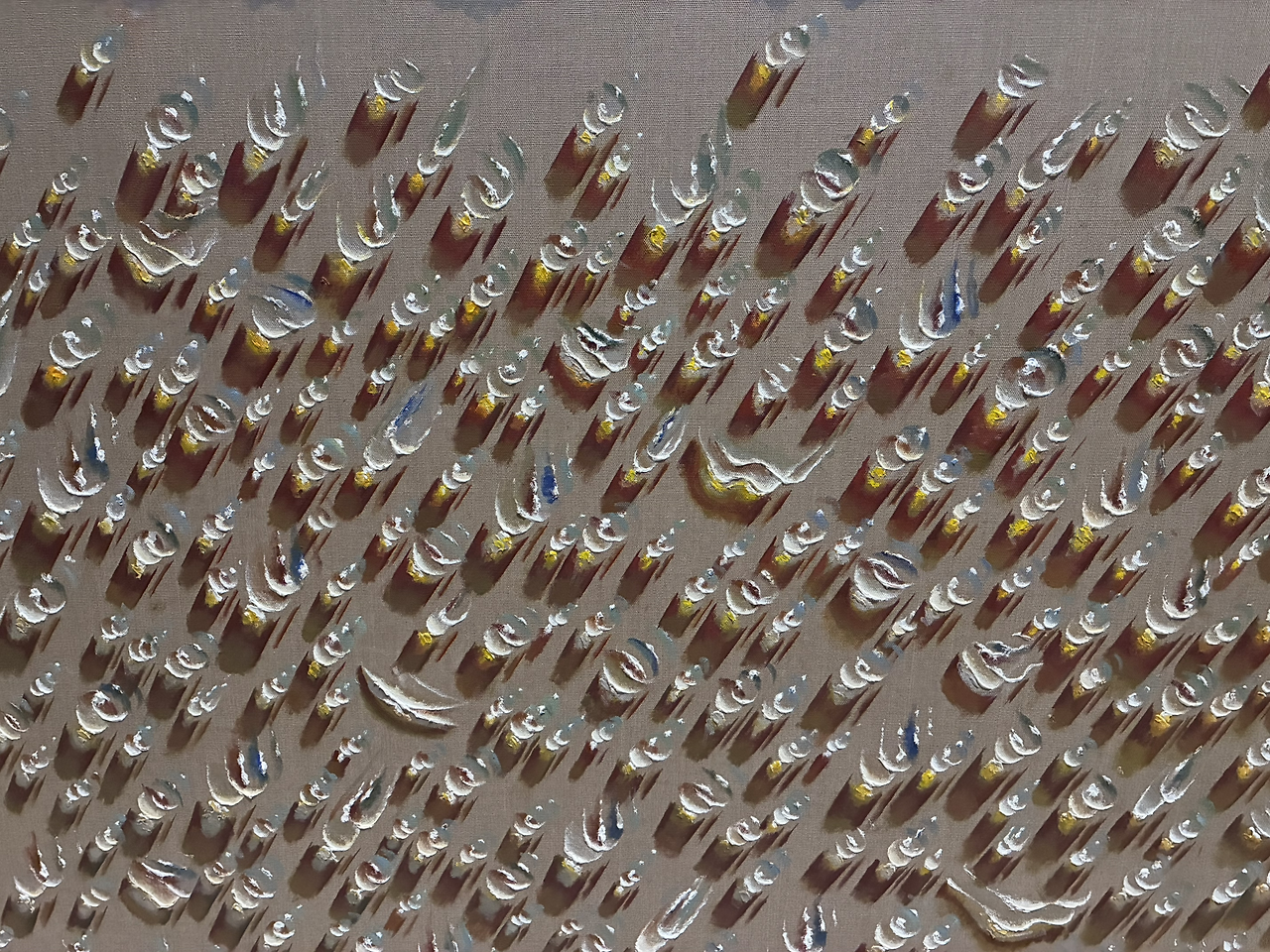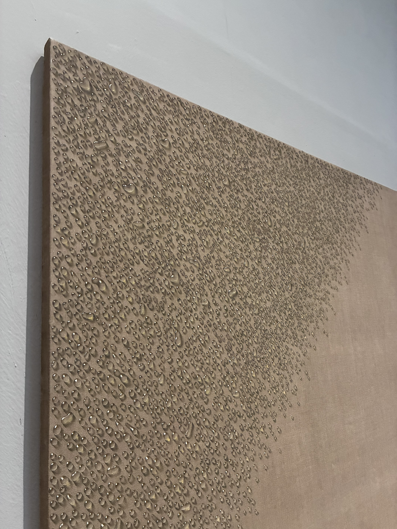 캔버스 위를 빼곡히 메운 다양한 형태의 무수히 많은 물방울들을 보며 나는 이런저런 깊은 생각에 잠기지 않을 수 없었다. 세상이 이렇게나 넓고, 이렇게나 다양한 존재가 모여 살고 있으며, 나 또한 그 무수히 많은 존재들 중 하나에 지나지 않음을.. 하지만 그럼에도 불구하고 나를 포함한 그들 모두가 저마다 다른 모양을 갖고 있음을.... 작가가 그려낸 물방울에 나는 인간을 투영하여 바라보았다.