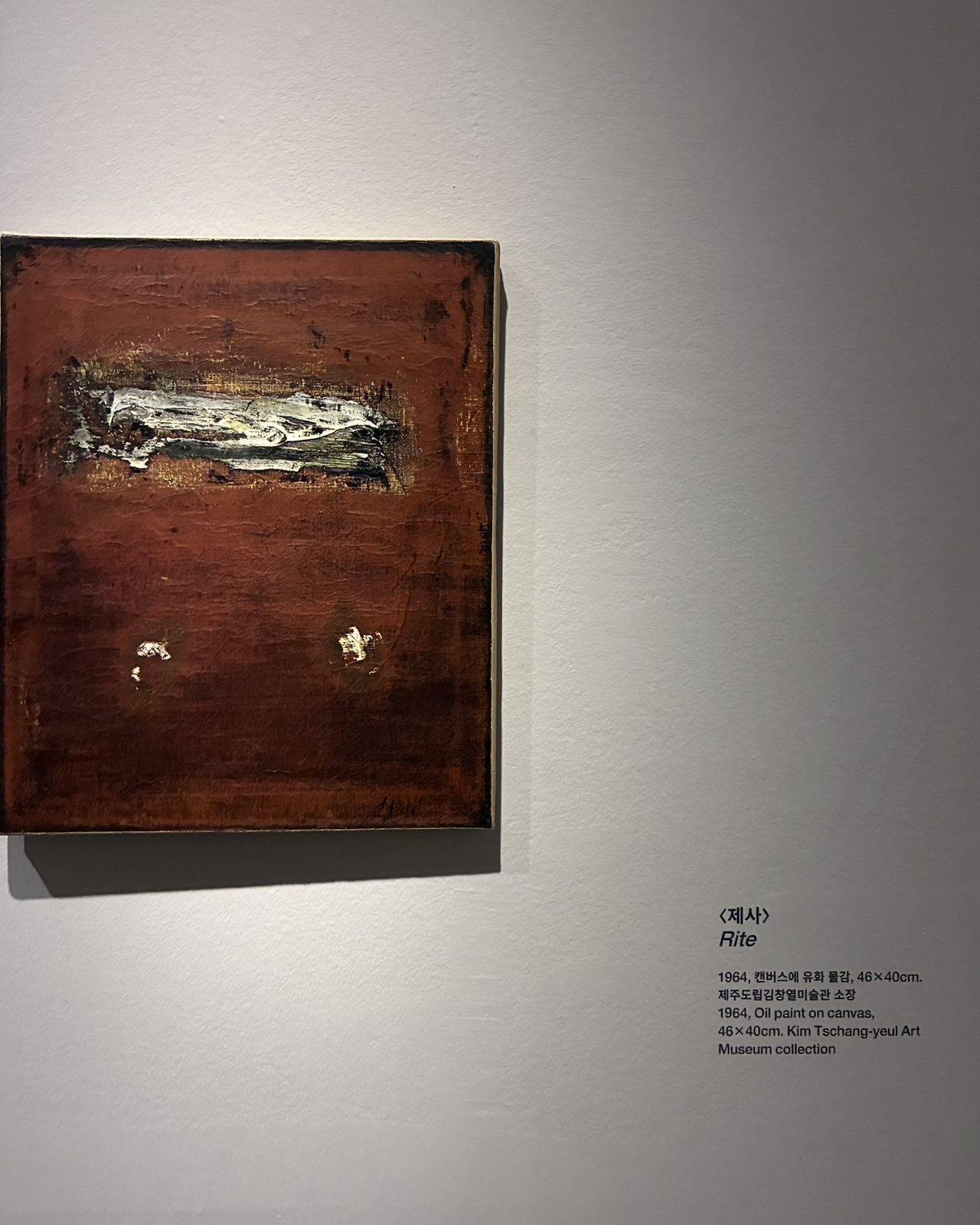전시장의 첫 번째 구역에는 <제사>라는 제목을 단 작품들이 많았는데, 처음엔 이 층층이 덧발린 색색의 물감들에게서 색의 의미를 탐구해 보다가, 전시장 한편에 적힌 어느 문구 하나를 보고 난 이후로는 어쩌면 작가가 애도를 담아, 상처를 하나하나 지우는 마음으로 이 물감을 바른 것은 아니었을지 생각하게 되었다.