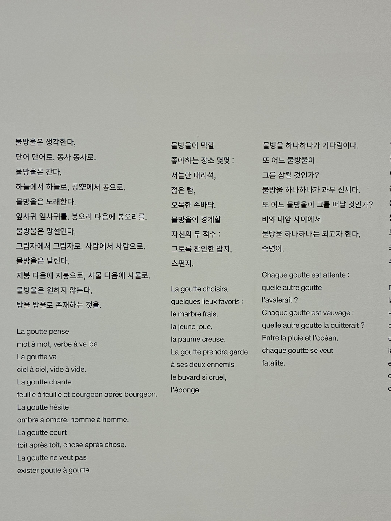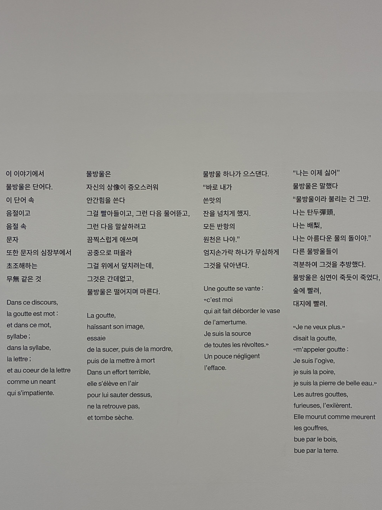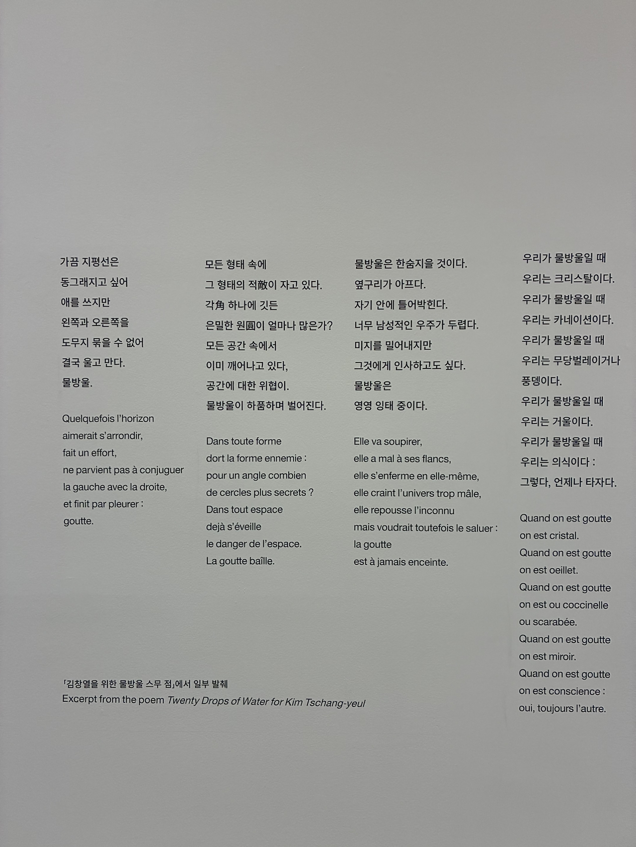 한국에서 미국, 미국에서 프랑스로 거쳐가는 동안 그의 예술 또한 무수한 여정을 지나 이윽고 '물방울'과 마주하게 된다.