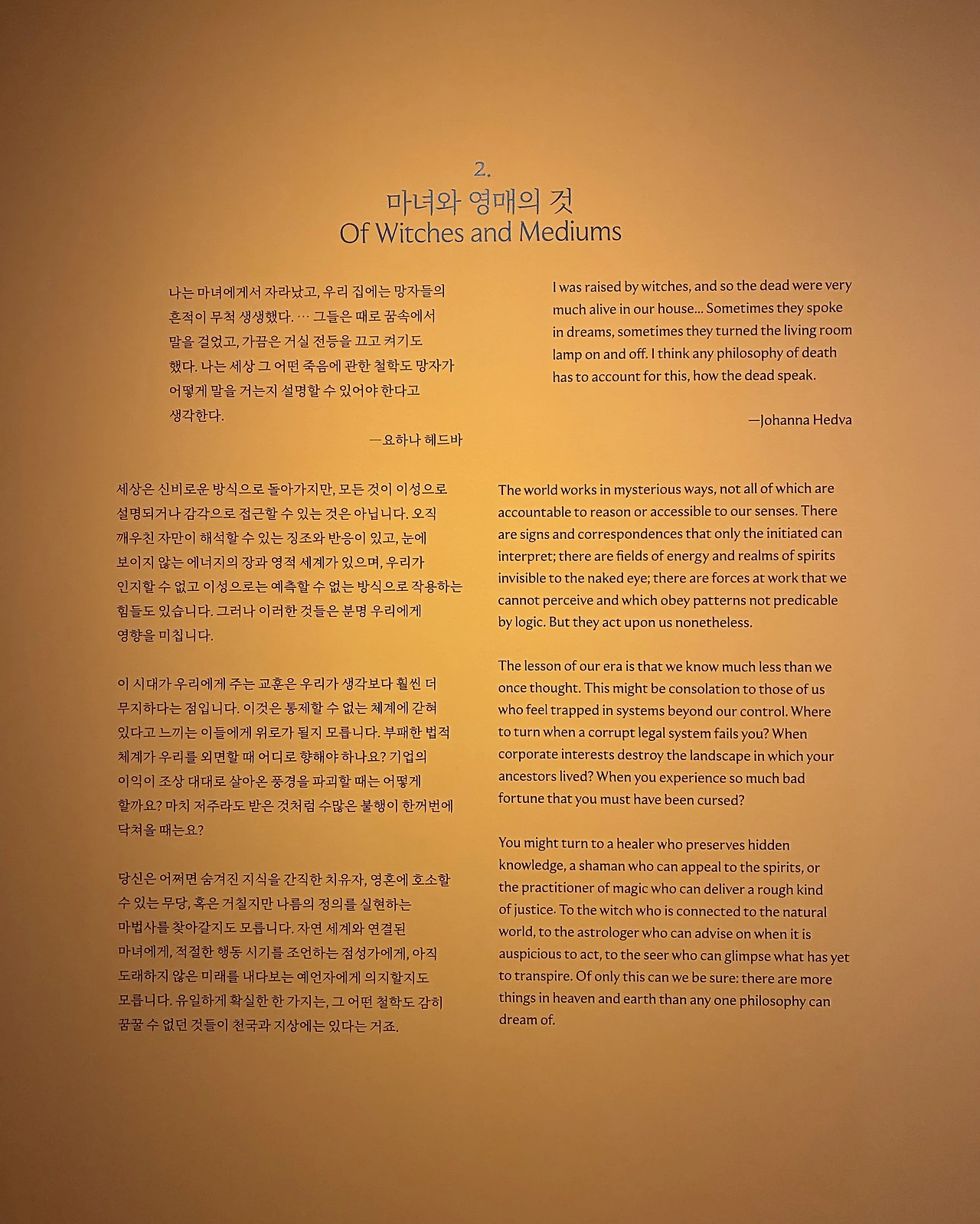 나는 종교를 믿지도 않고 과학을 신뢰하는 사람이지만, 이와는 별개로 지극히 흥미 목적으로 그로테스크하고 영묘한 것들을 좋아한다. 주술에는 별 관심도 없을뿐더러 초자연적인 현상에 대해서 그다지 호기심을 가져본 적도 없지만 말 그대로 '주술적인' 디자인이나 모티프는 매우 흥미롭게 여겨왔다. 그래서 이 전시 또한 매우 흥미로울 것이라 기대하고 방문하였다.