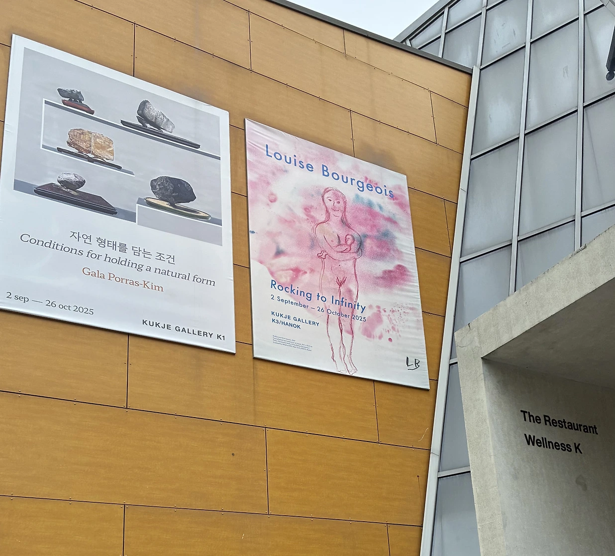 현대미술사에 중요한 족적을 남긴 작가 중 한 사람으로 손꼽히는 루이스 부르주아(Louise Bourgeois)의 전시에 다녀왔다. 그녀의 전시는 당시 국제갤러리와 호암미술관 두 곳에서 동시에 열리고 있었는데, 국제갤러리의 것이 조금 더 전시기간이 짧았기에 서둘러 먼저 관람하였다. 전시 제목 <Rocking to Infinity>와 현수막에 그려진 엄마와 아이의 형상으로 미루어 짐작해 보건대, 이 전시는 모성애를 비롯한 '엄마'로서의 모든 정신적·육체적 경험을 보여주고자 하는 것이 아닐까 싶었다.