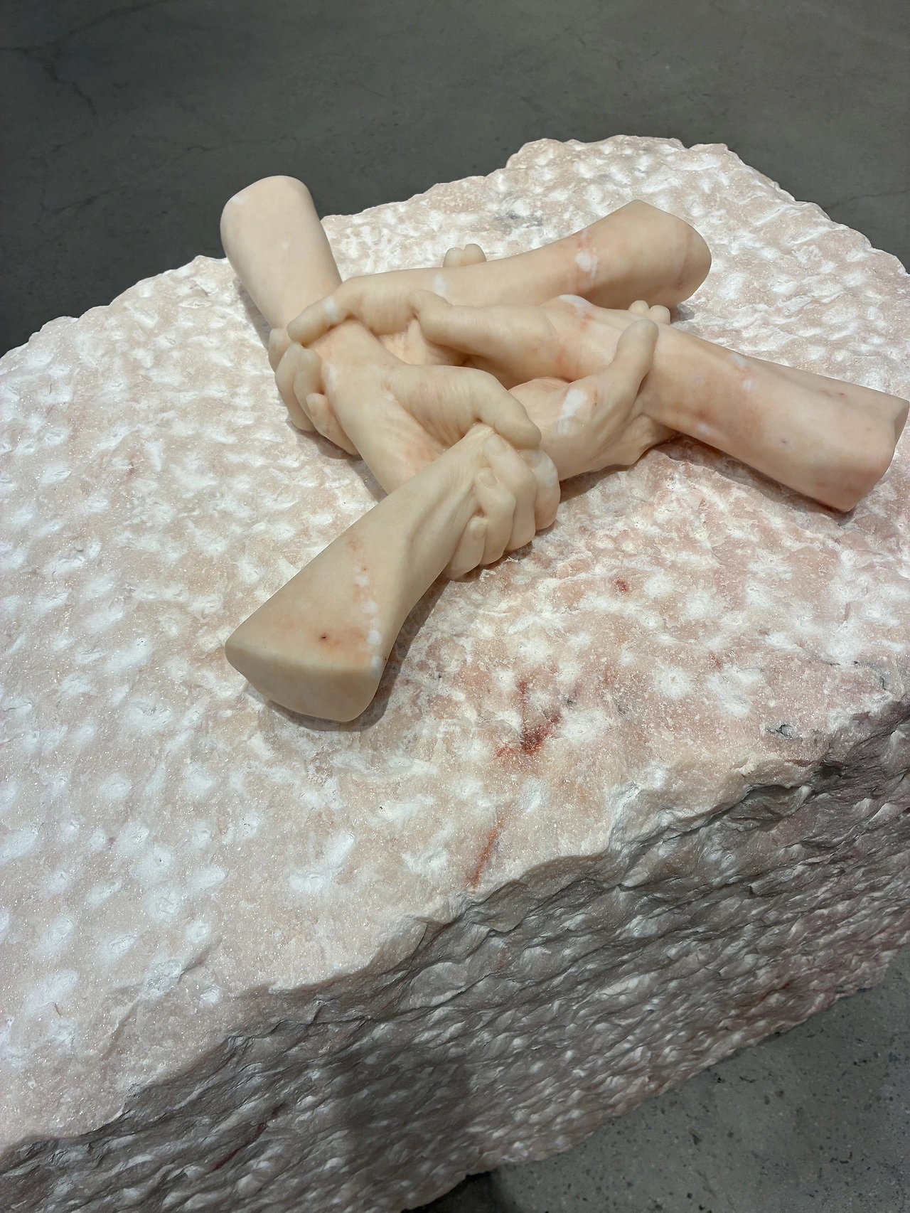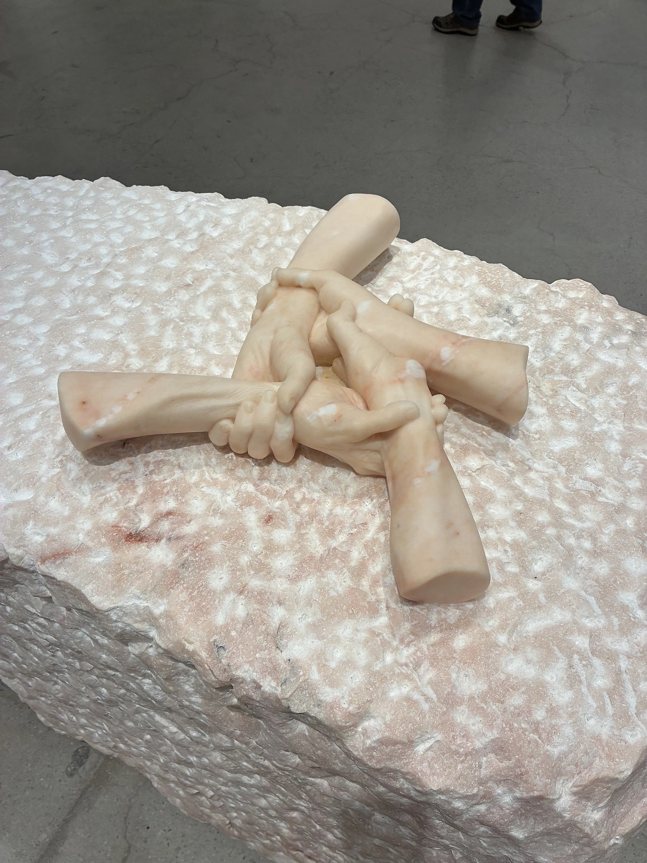 천장에 매달린 두 사람의 형상 조각 <The Couple> 앞에서는, 사랑 그리고 연인이라는 개념에 대해서 잠시 고민해 보는 시간을 가졌다. 이 둘은 서로 의지하고 지탱하며 공생하는 관계인가, 아니면 서로 의존하고 집착하며 속박하는 관계인가. '사랑'의 메커니즘은 참 복잡 미묘하다. 다른 한편에 놓인 대리석 작품 <Untitled(No.5)> 앞에서도 역시 나는 유대와 사랑이라는 복잡한 개념에 대해서 고민해 보지 않을 수 없었다. 작가는 이 대리석 작품을 동해 자신의 오랜 친구이자 작업 동료였던 Jerry Gorovoy와의 깊은 정서적 유대감을 표현했다고 하지만, 그저 한 걸음 떨어져 작품만을 감상할 뿐인 제삼자인 나로선 서로의 손목을 단단히 붙잡고 있는 이 팔의 형체들이 '사랑과 집착은 한 끗 차이'라는 명제를 아주 잘 드러내고 있는 것 같아 오히려 작가의 공식 의도가 더욱 흥미롭게 느껴졌다.