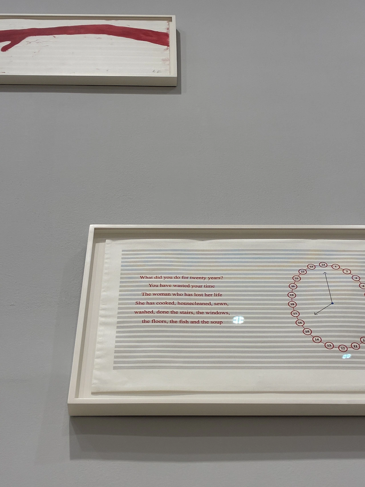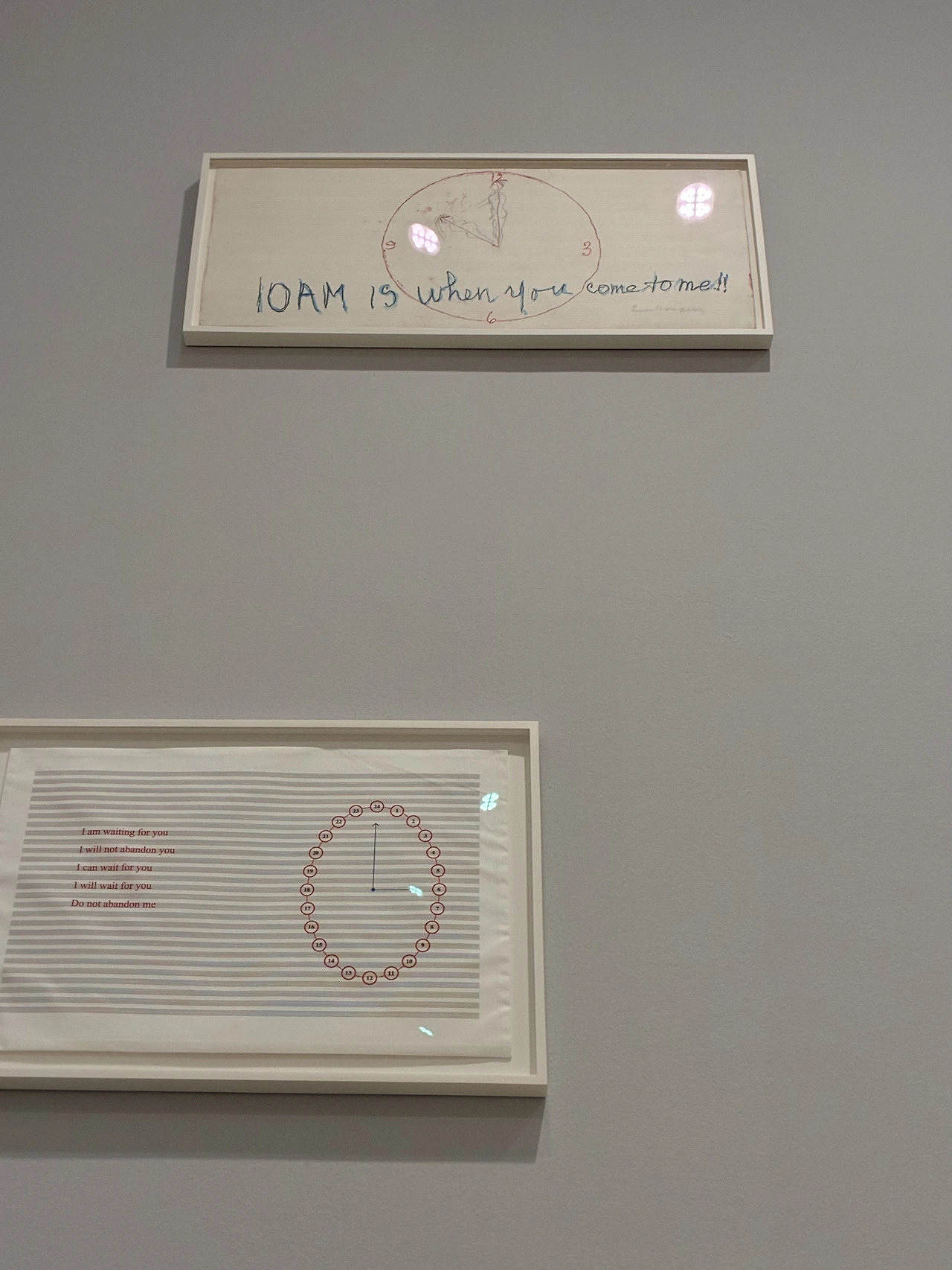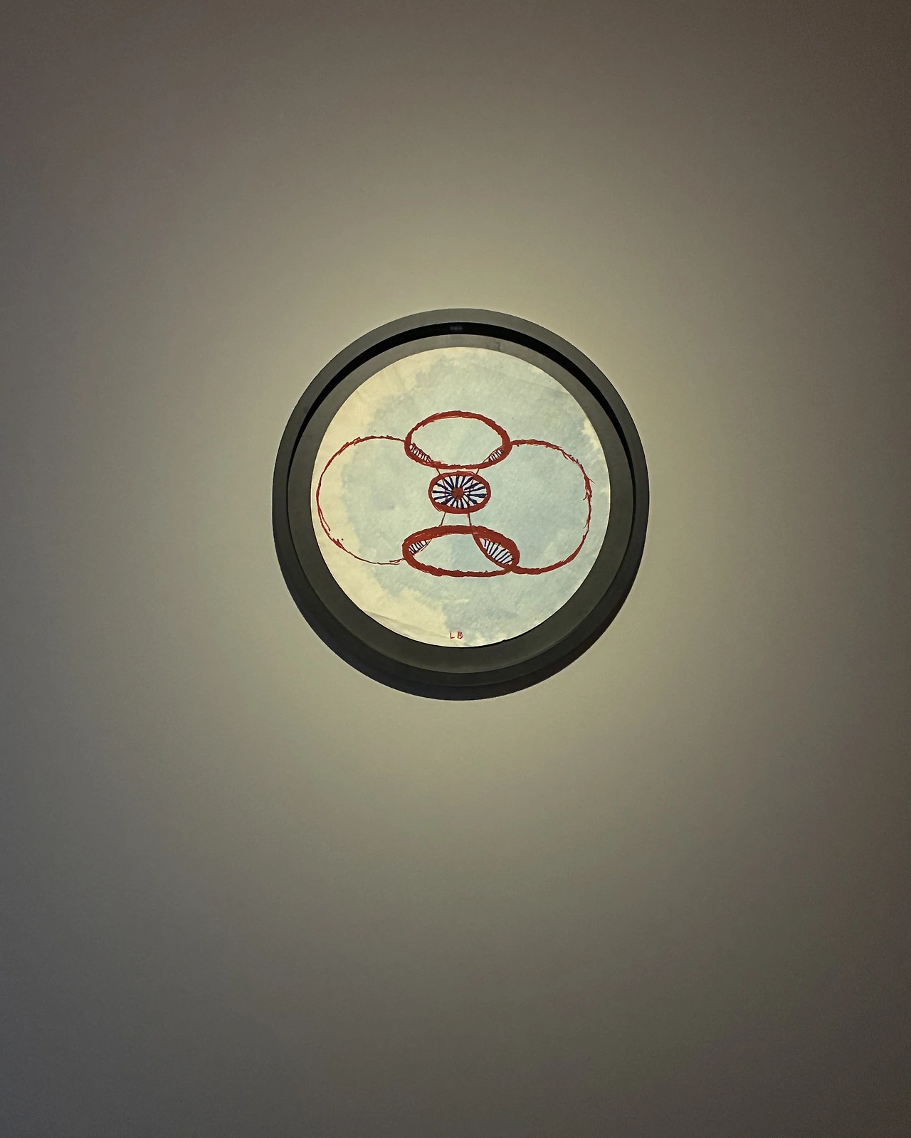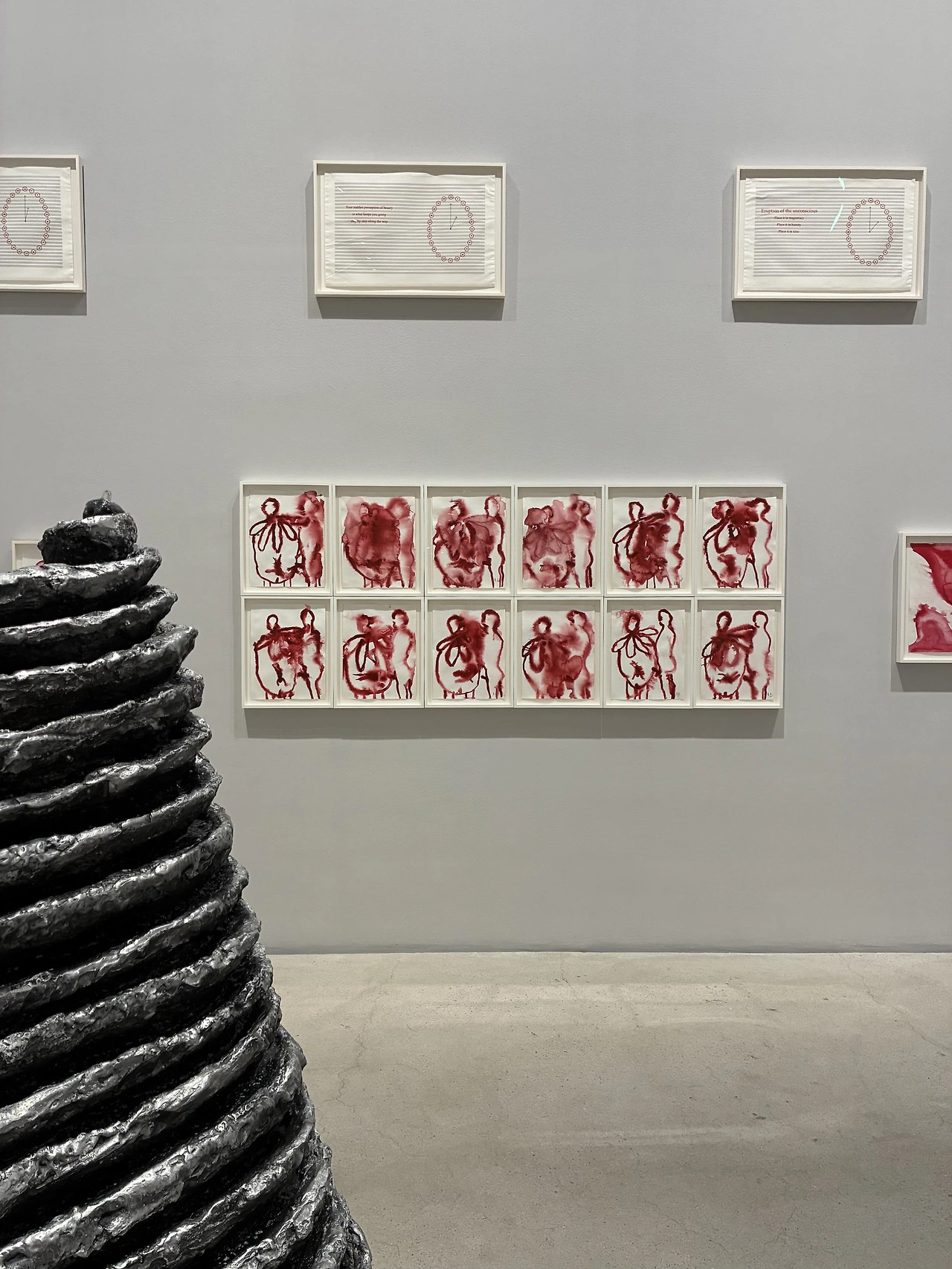 동시에 진행되고 있던 '갈라 포라스 김(Gala Porras-Kim)'의 전시를 먼저 감상한 뒤 넘어간 한옥 전시장에서는 ‘루이스 부르주아’의 커피필터 드로잉 연작을 다수 만나볼 수 있었다. 커피필터라는 재료가 가진 특성과 물감이 만나 독특한 질감 그리고 매력적인 색의 표현이 이뤄졌다. 작가가 종이 위에 반복적으로 그려낸 삼각형과 원에는 어떠한 의미가 투영되었을지 나름대로 짐작해 보며 커피 필터 연작을 흥미롭게 감상했다.