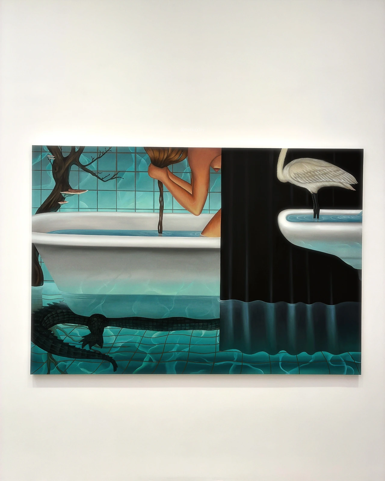 하나의 캔버스 안에 공간이 분리된 듯한 연출을 만들어낸 아래 두 작품 역시 굉장히 상징적이고도 감각적이다. 작가가 영화 미술 쪽 일을 했었어도 두각을 드러냈을 것 같다는 생각이 든다.