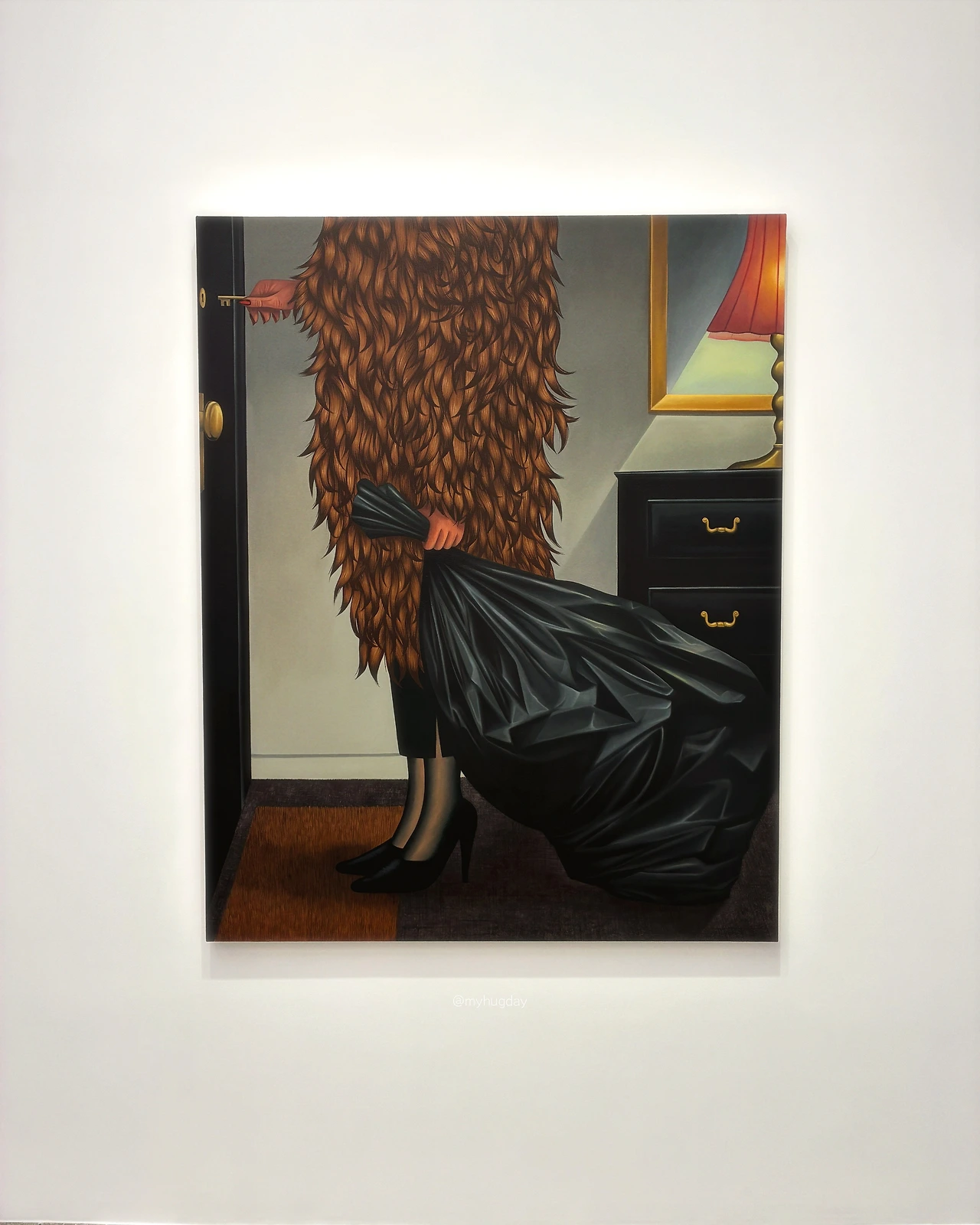 봄맞이 대청소는 가사노동 행위이면서도 가정 내 의미 있는 연례행사이기도 하다. 작가가 Spring Cleaning이라 이름 붙인 이 작품을 보면서, 커다란 쓰레기봉투를 들고 막 집을 나서려는 깃털로 뒤덮인 여인을 보며, 그리고 그녀의 발에 신겨져 있는 날렵하게 잘 빠진 스틸레토힐을 보며, 엄마이자 아내인 그녀도 여인임을, 그녀의 희생과 고독을 헤아려 보게 된다.