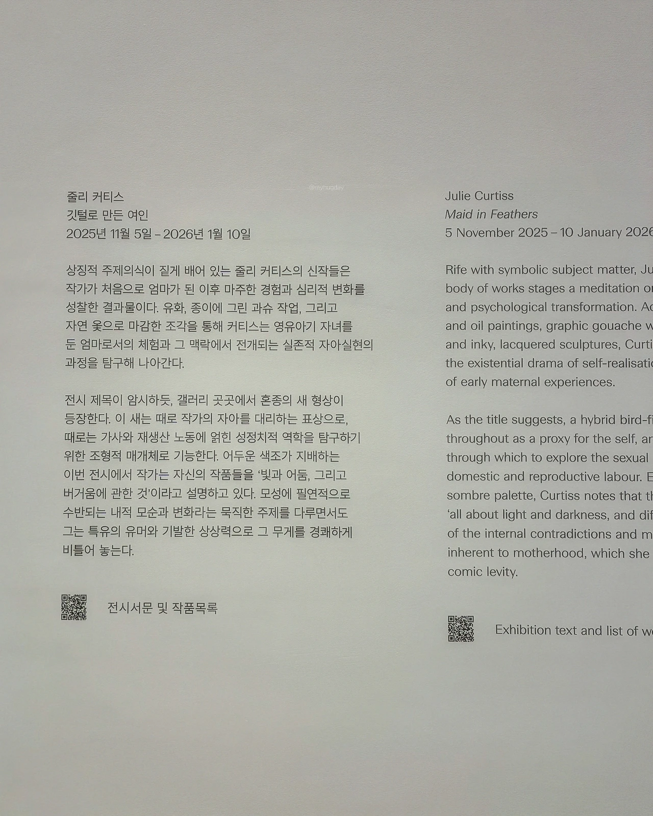 엄마의 희생과 노고에 감사하며, 앞으로도 날갯짓을 멈추지 않겠다고 다짐하며, 줄리 커티스 전시 감상기를 마무리한다.