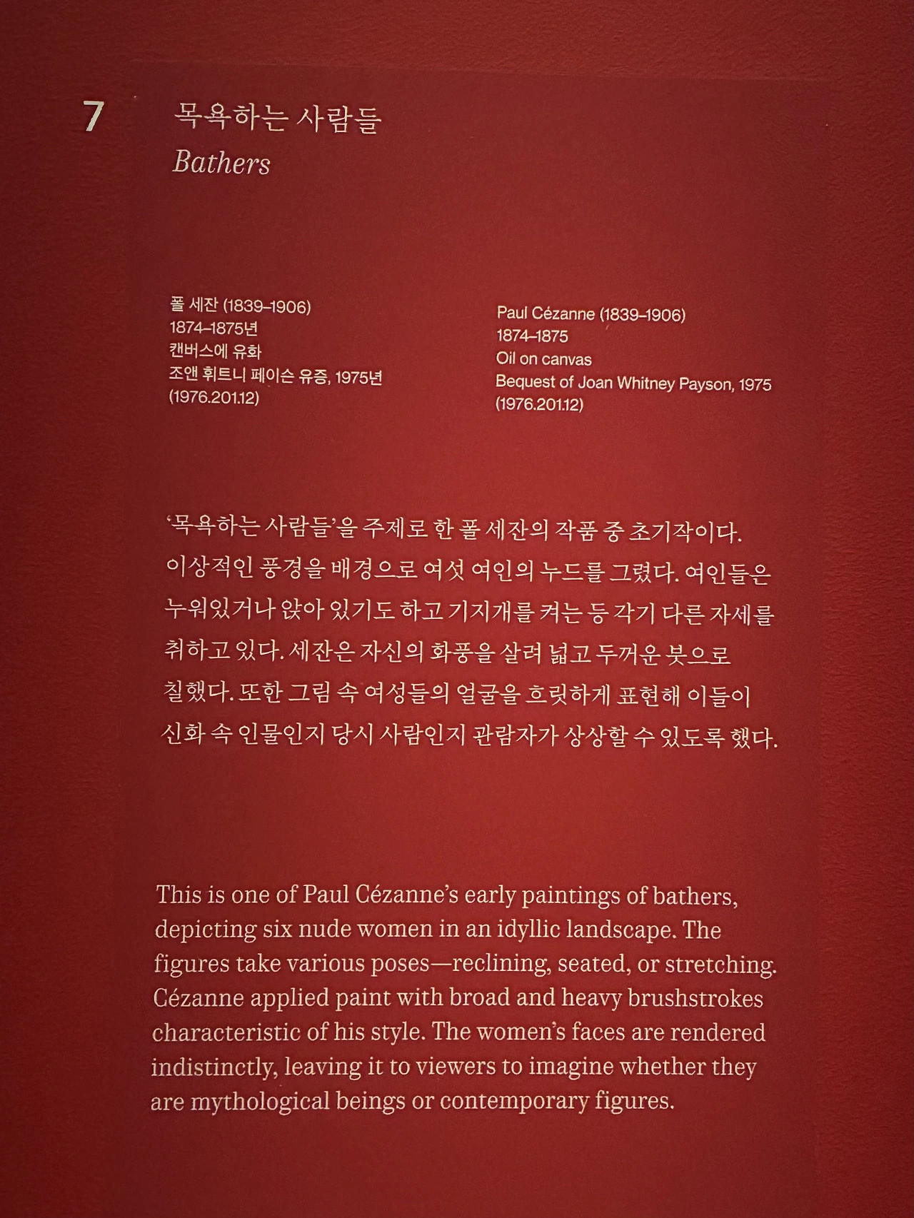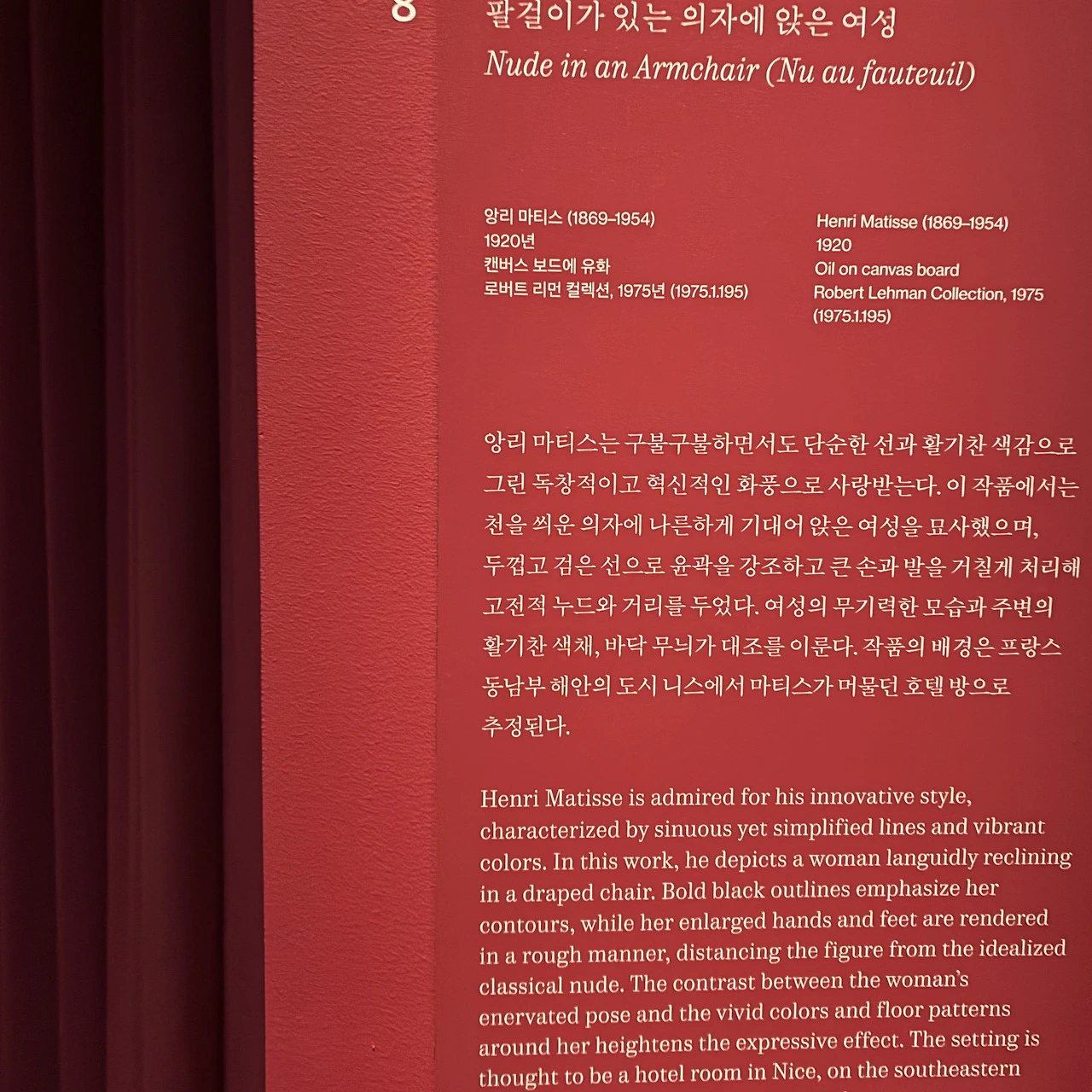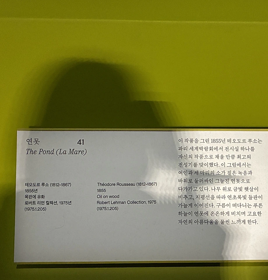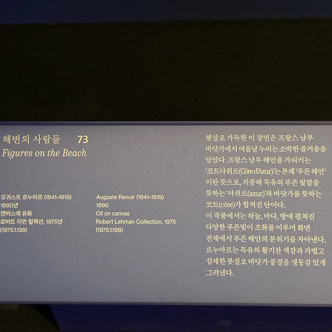 2025년 대한민국은 마치 인상주의 미술의 해이기라도 한 것처럼 정말 온 미술관에서 너도나도 인상주의 작품 전시회가 열렸다. 보고 또 보아도 좋은, 멋진 작품들이지만 솔직히 조금 당황스러울 만큼 여기저기 온 동네가 '인상주의'라는 문구로 가득한 한 해였어서, 보통 한 전시를 두 번 이상 가는 편인 내가 작년 전시들은 죄다 한 번씩만 보고 말 정도였다. 그러나 구시렁거리면서도 동네방네 인상주의 전시들을 참 성실히도 찾아다녔다. 이 전시 또한 '인상주의' 키워드를 내건 전시로, 국립중앙박물관에서 미국 메트로폴리탄박물관으로부터 공수해 온 로버트 리먼 컬렉션이다. 로버트 리먼 컬렉션에 대한 내용은 바로 아래에 첨부한 전시안내문 사진에 나와 있으니 참고하시기 바란다.