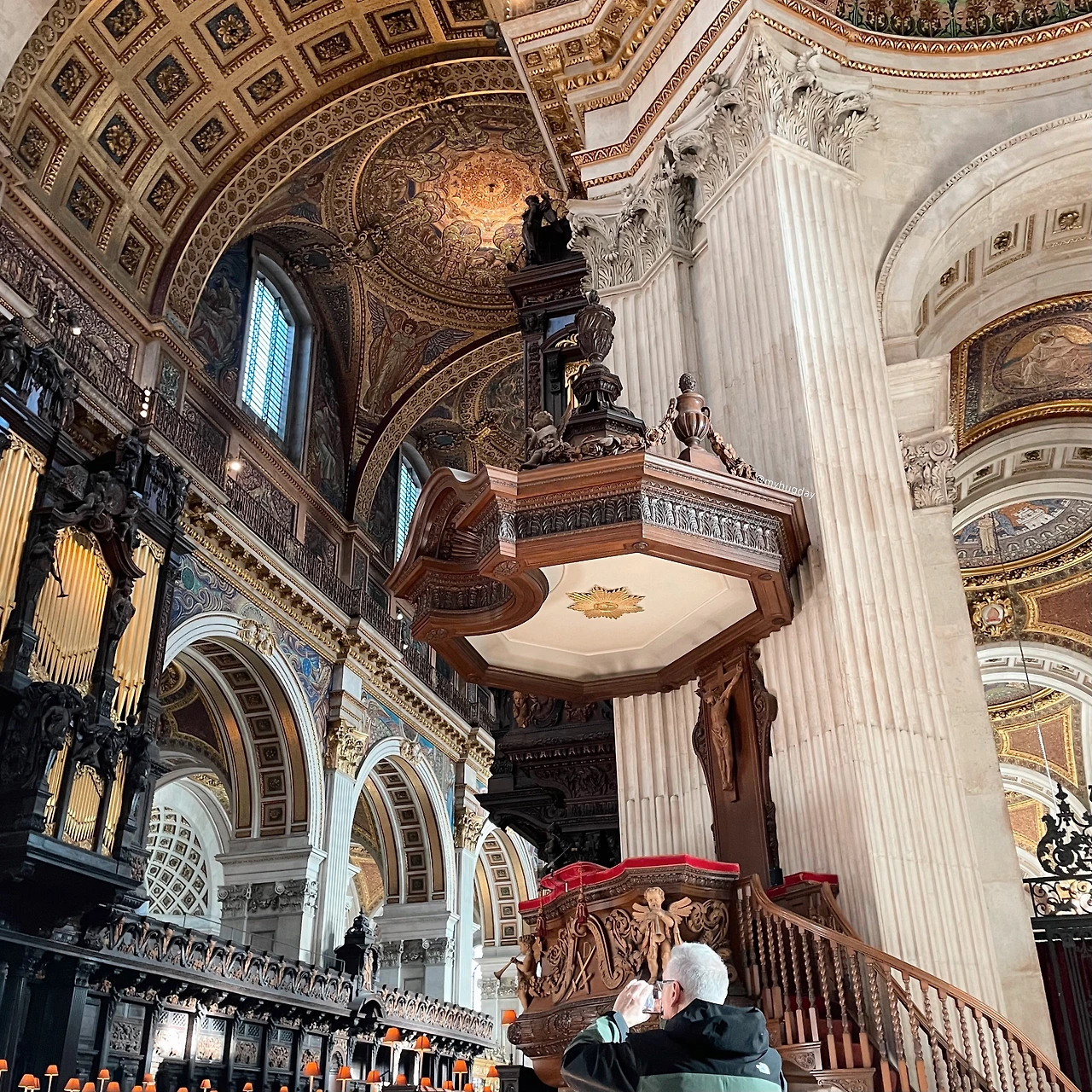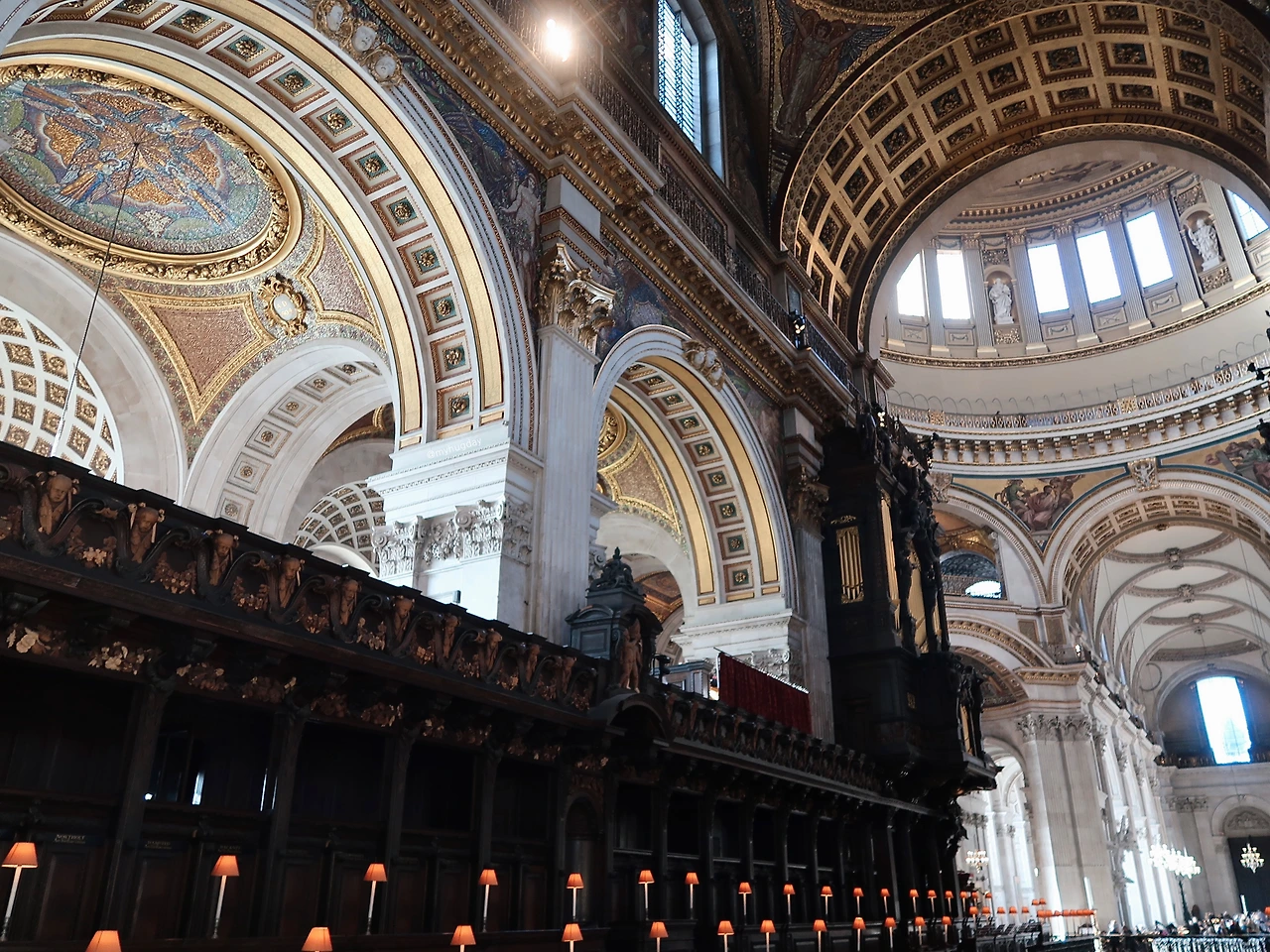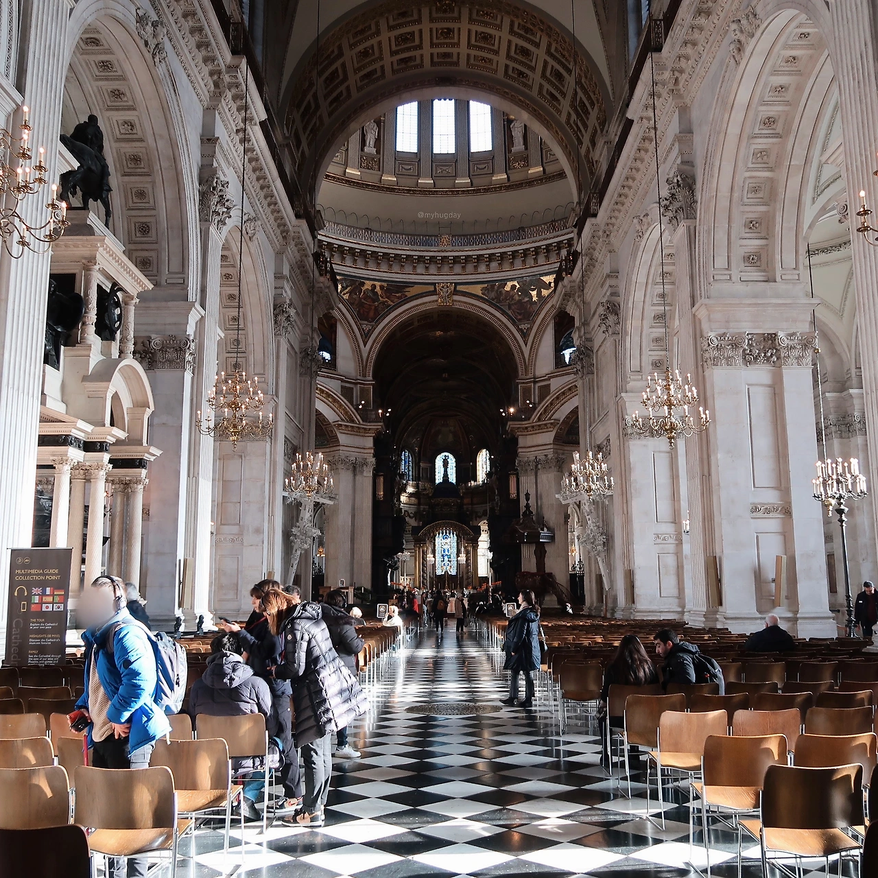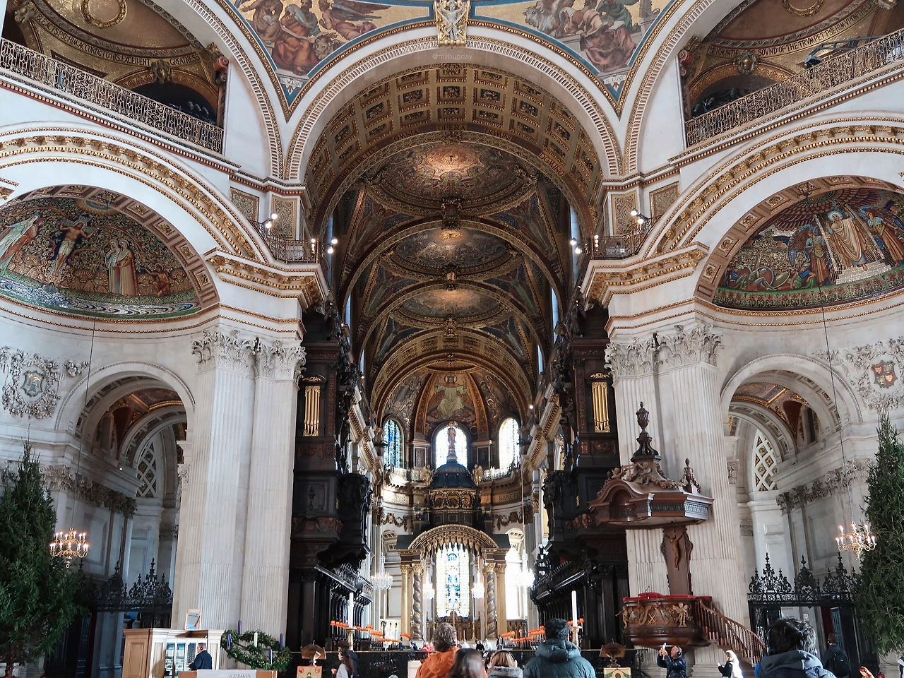 매우 아름다운 것을 보면 순간적으로 숨이 턱 막힘과 동시에 도파민이 분비되어 입가에 절로 미소가 지어지는데, 세인트폴 대성당에 들어가자마자 마주한 광경에 바로 그러한 상태가 되고 말았다. 나는 어느 절세가인에게 한눈에 반해버린 혈기왕성한 청년처럼 황홀함에 젖어 한 발 한 발 내디뎠다. 성당 외부도 우아하고 아름다웠지만 내부는 그에 화려함이 더해져 성당 한 채가 그야말로 하나의 예술 작품이라 할 수 있었다. 천장과 벽, 그리고 창문을 수놓은 그림들과 도금 장식, 조형물, 샹들리에, 기념비들이 보는 이에게서 감탄을 자아내도록 화려함을 뽐내는 한편, 영국 고유의 분위기 또한 분명하게 드러내고 있어 과연 런던의 명소로 손꼽을 만하였다. 같은 런던 내에 있는 웨스트민스터 수도원과는 또 다른 매력을 지니고 있어, 두 곳 모두 입장료가 꽤 비싸긴 하지만 개인적으로 두 장소 모두 꼭 방문할 가치가 있다고 생각한다.