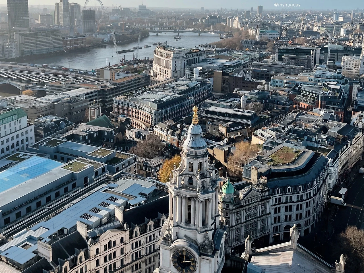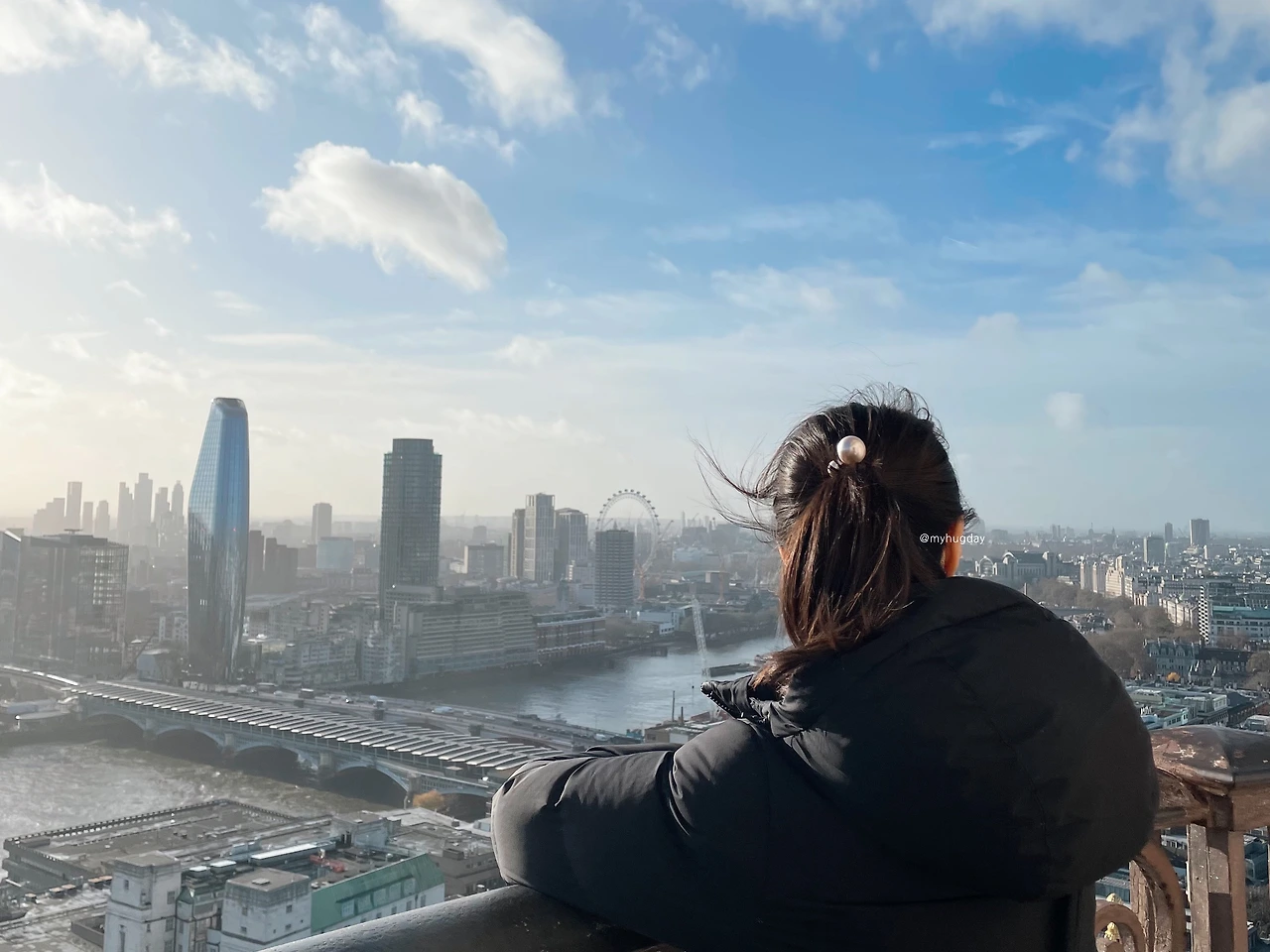 무엇보다 세인트폴 대성당만의 차별화된 장점은 바로 런던 시내를 한눈에 관망할 수 있는 전망대가 있다는 점인데, 나 역시 이 때문에 세인트폴 대성당을 꼭 방문하고자 마음먹었었다. 전망대에 올라가려면 안타깝게도 승강기가 없어 나선형 계단을 직접 두 다리로 걸어 올라야 하지만 나는 운동이라 생각하고 아주 즐겁게 올랐다. 하지만 무려 528개의 돌층계를 오르내려야 하니 몸이 불편하거나 체력이 부족한 사람, 혹은 고소공포증이 있는 사람은 진지하게 고민해보아야 할 사항인 것 같다. 첫 번째 전망대인 Stone Gallery를 지나 그보다 더 높은 Golden Gallery로 갈 때는 아주 좁은 철제 계단을 올라야 하는데 많은 이들이 이곳에서 포기하고 돌아가는 모습을 보았다. 그러나 조금만 더 용기를 내어 올라간다면 탁 트인 멋진 전망을 무료로 볼 수 있다. 더군다나 내가 세인트폴 대성당을 방문한 이 날은 날씨가 매우 화창하여 그야말로 고생하여 올라온 보람이 넘쳤다. 비록 바람이 매우 거세게 불고 햇빛이 강렬하여 눈을 똑바로 뜨기 어렵기는 했지만 말이다.