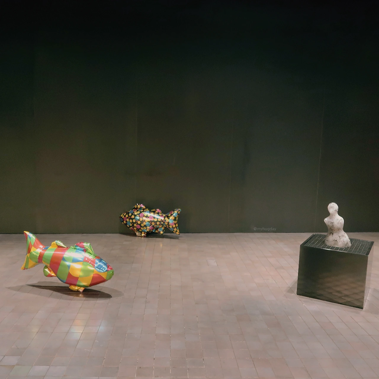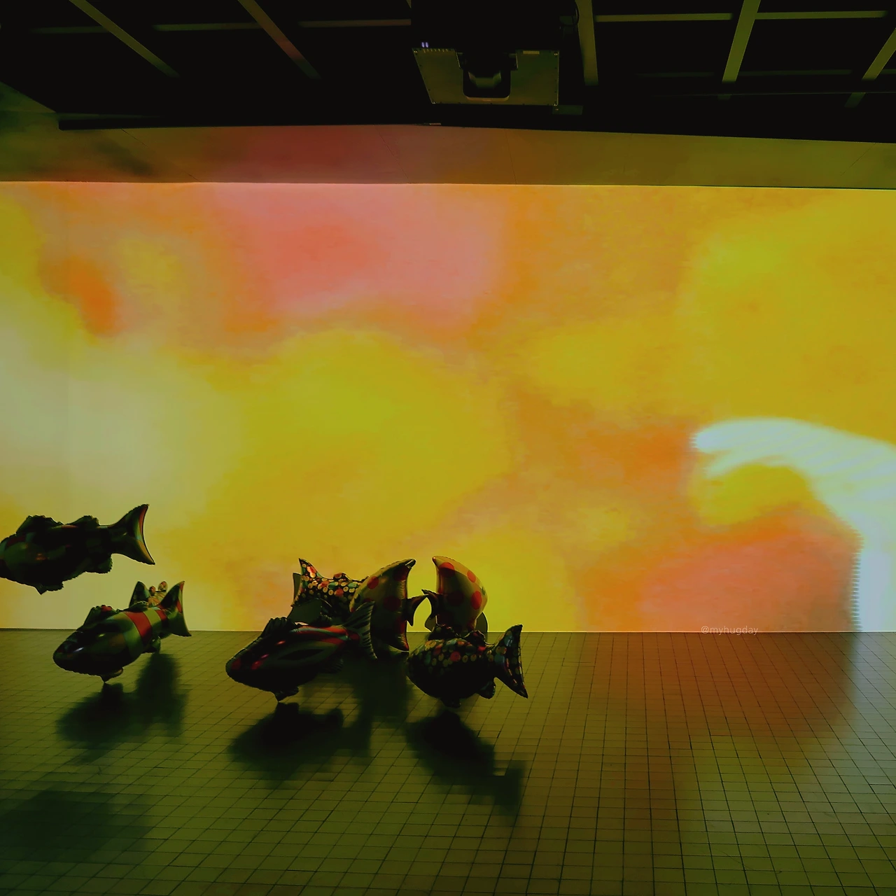 그러한 나의 곁에서 함께 서성거리는 또 다른 존재가 있었는데, 그것은 바로 풍선 물고기들이다. <내 방은 또 다른 어항>이라는 이름의 작품이기도 한 이 물고기들은 정해진 지점 없이 전시장 내부를 자유롭게 유영하며 나의 호기심을 불러일으켰다. 어떤 물고기들은 홀로, 어떤 물고기들은 우르르 한데 몰려있기도 하였는데 이 모습이 꼭 저들끼리의 작당모의 현장 같기도 하고, 혹은 갑자기 ‘그들의 어항’ 안에 들이닥친 사람들에 대한 공포와 경계심의 표현 같기도 하였다. 또한, 어떤 물고기들은 도대체 어떻게 저런 곳까지 들어간 것인지 궁금하게 만들 정도의 구석 또는 천장에 은신해 있었는데 사람들로부터 도피하여 자유를 만끽하고 있는 것처럼 보이는 그들의 모습이 제법 흥미로움과 동시에 그들의 자유를 규시하고 있는 데 대하여 슬쩍 미안한 마음이 들어 고개를 돌렸다.