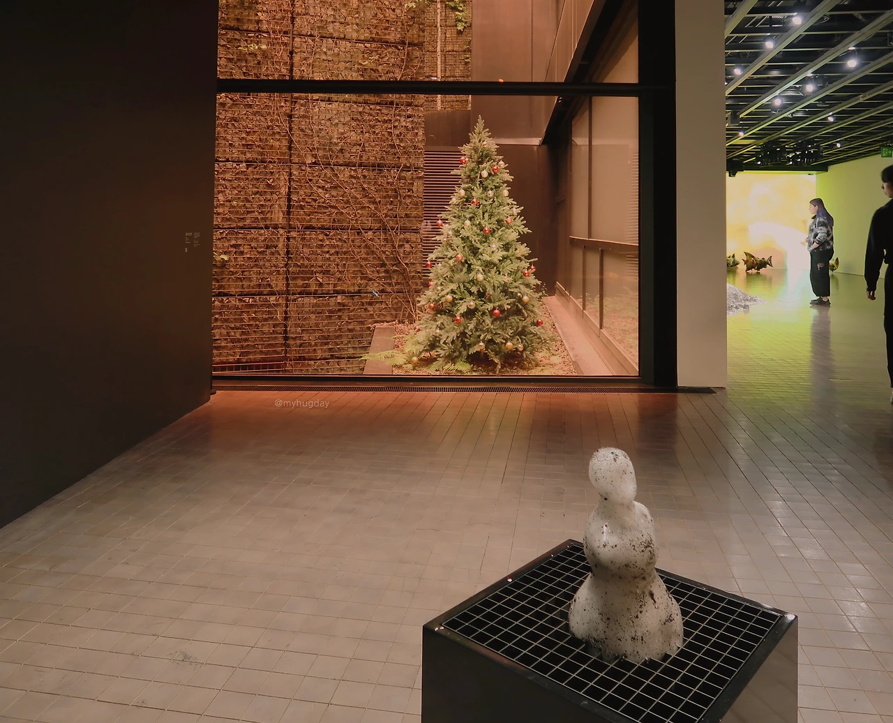 리움 미술관 건물 내부에 들어서기 전에 가장 먼저 마주하는 작품은 아마도 야외에 설치된 <막>일 텐데, 센서를 통하여 야외의 기온, 습도, 바람 등의 외부 환경 요소들을 수집하고 이를 사운드로 전환하여 미술관 내부로 흘려보내는 역할을 한다는 이 기특한(?) 설치물은 그 생김새만으로도 사이보그 영화에서 나올 법한 디스토피아적인 분위기를 풍기는 것이 인상적이었다. 내가 방문한 날의 날씨는 비구름이 잔뜩 낀 은빛 하늘에서 종종 이슬비를 떨어뜨리곤 하였는데 그 때문인지 전시장 내부에 몽환적이면서도 을씨년스럽기도 하고, 편안하면서도 약간 우울하기도 한, 딱 그날의 날씨와 유사한 분위기의 소리가 구름처럼 떠 다녔다. 여기에 전시장 유리창의 누런 빛깔은 그 소리의 다중적이고도 양면적인 심상을 한층 더 극대화시켜 주는 듯하였고, 그 소리 위에 덧입혀진 <여름 없는 한 해> 피아노 소리는 지금까지 살아오며 겪었던, 내 인생의 수많은 순간순간 기억의 조각들이 마치 밤에 피는 꽃잎처럼 뜬금없이 꽃망울을 틔우도록 만들었다. 천장에서 피아노 뚜껑을 타고 떨어져 내리는 주황색 가루들은 어쩌면 그 순간들이 떠나고 난 후에 남은 기억의 파편들, 혹은 감정의 잔해들처럼 느껴졌는데, 외로움, 슬픔, 기쁨 등, 기억 너머 잔류하는 모든 감정들이 쌓이고 쌓여 우르르 무너지며 동시에 음악으로 치환되는 것 같은 느낌이 들었다. 피아노에서 흘러나오는 자동연주는 결코 명연도, 명곡도 아니었으나 나로 하여금 어쩐지 그 곁을 떠나지 못한 채 한참 동안이나 서성거리도록 만들었다.