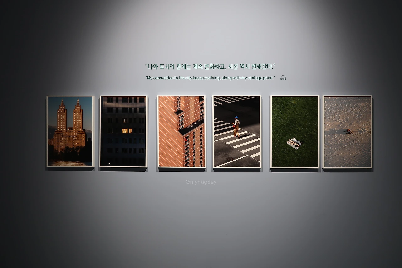 첫 번째 챕터 <Paused Moments>에서는 자연의 빛을 만난 도심 속 건물들의 모습을 보여주고 있는데, 평소 해질녘 황금빛으로 찬란히 빛나는 저녁의 광채를 머금은 하늘이며 나무, 풀꽃들, 그리고 건물들을 사랑하는 나로선 이 공간에 들어오자마자 절로 행복의 미소를 지을 수밖에 없었다. 딱히 특별하거나 독창성이 느껴지는 사진은 아니었지만 적어도 보는 이로 하여금 행복, 설렘, 편안함 등의 긍정적인 감정을 가질 수 있게 하는 섹션이었다.