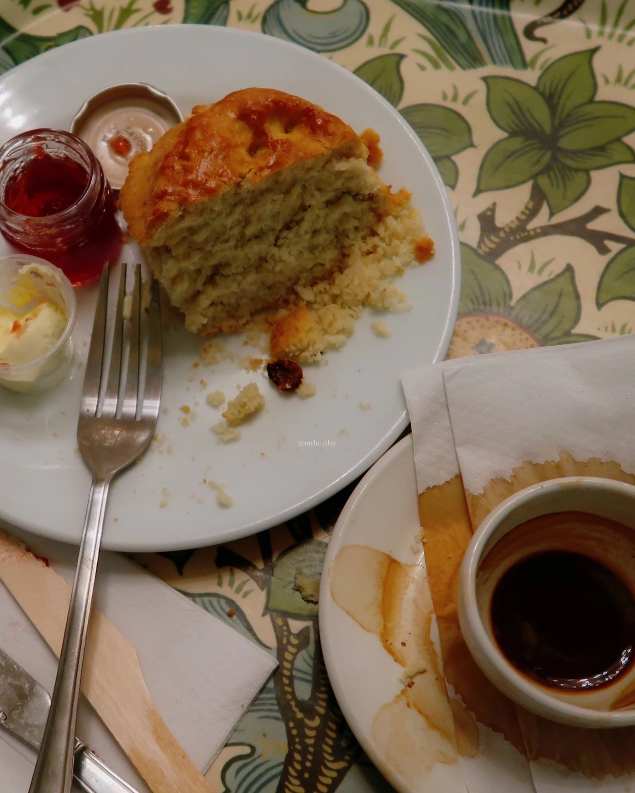 나는 칼로 가른 스콘 위에 먼저 클로티드 크림을 얹어 입 안에 넣었다. 기본에 아주 충실한 식감과 맛이었는데 스콘 맛집이라는 칭호에 어울리는 맛인지는 잘 모르겠다. 그냥 무난하게 먹을만한 정도였고, 에스프레소 역시 특별한 풍미는 없는 평범한 커피였다. 그래도 예쁜 인테리어 덕에 혀는 몰라도 확실히 눈은 아주 즐겁다. 한산할 때 와서 조용히 책 읽거나 그림 그리면 참 좋을 것 같은 공간이다.